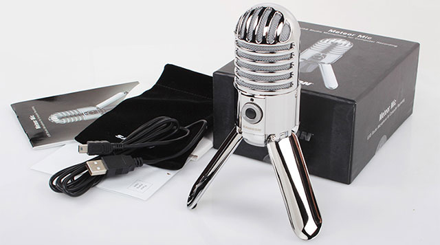 Kết cấu hoàn hảo Micro Thu Âm USB - Samson Meteor Mic có một trong các màng ngăn tụ lớn nhất (25mm) của bất kỳ mic USB. Mô hình cardioid pickup, đáp ứng tần số mịn và 16-bit, 44.1/ 48kHz cho bạn kết quả âm thanh chuyên nghiệp. Vỏ ngoài mạ crôm Meteor Mic bao gồm một thiết kế chân gập trông tuyệt vời trên máy tính để bàn của bạn. Và các chân điều chỉnh đến vị trí tối ưu cho bất kỳ ứng dụng ghi âm từ guitar acoustic, thu âm giọng hát hay bài phát biểu. Micro thu âm nhạc cụ Samson USB Meteor gồm một ngõ ra âm thanh tai nghe giúp giám sát độ trễ và tai nghe âm lượng, nút vặn kiểm soát âm lượng hoàn hảo. Một nút mute trên microphone mang đến cho bạn sự riêng tư  bật tiếng tắt tiếng trong khi hội nghị video online.  Khả năng tương thích cao Micro thu âm Samson USB Meteor tương thích với hầu hết các phần mềm âm thanh kỹ thuật số trên máy tính. Một cáp USB và túi đựng cũng được bao gồm trong bộ. Đối với ca sĩ / nhạc sĩ hay ban nhạc Meteor Mic đảm bảo bạn sẽ bắt được tất cả các nốt cardioid nó bắt giọng hát 1 cách tự nhiên hoặc có thể được sử dụng để thu âm nhạc cụ hoặc thu âm ampli guitar. Ứng dụng micro thu âm Samson USB Meteor Samson USB Meteor dòng micro thu âm USB chuyên nghiệp, dùng làm micro thu âm trên máy tính, micro thu âm tại nhà hoặc micro thu âm studio, phát thanh, thuyết minh, micro lồng tiếng, thu âm truyện. Micro phòng thu chuyên nghiệp micro thu âm tại nhà, home recording studio, micro hát karaoke online trên các diễn đàn ca hát, CCtalk.
