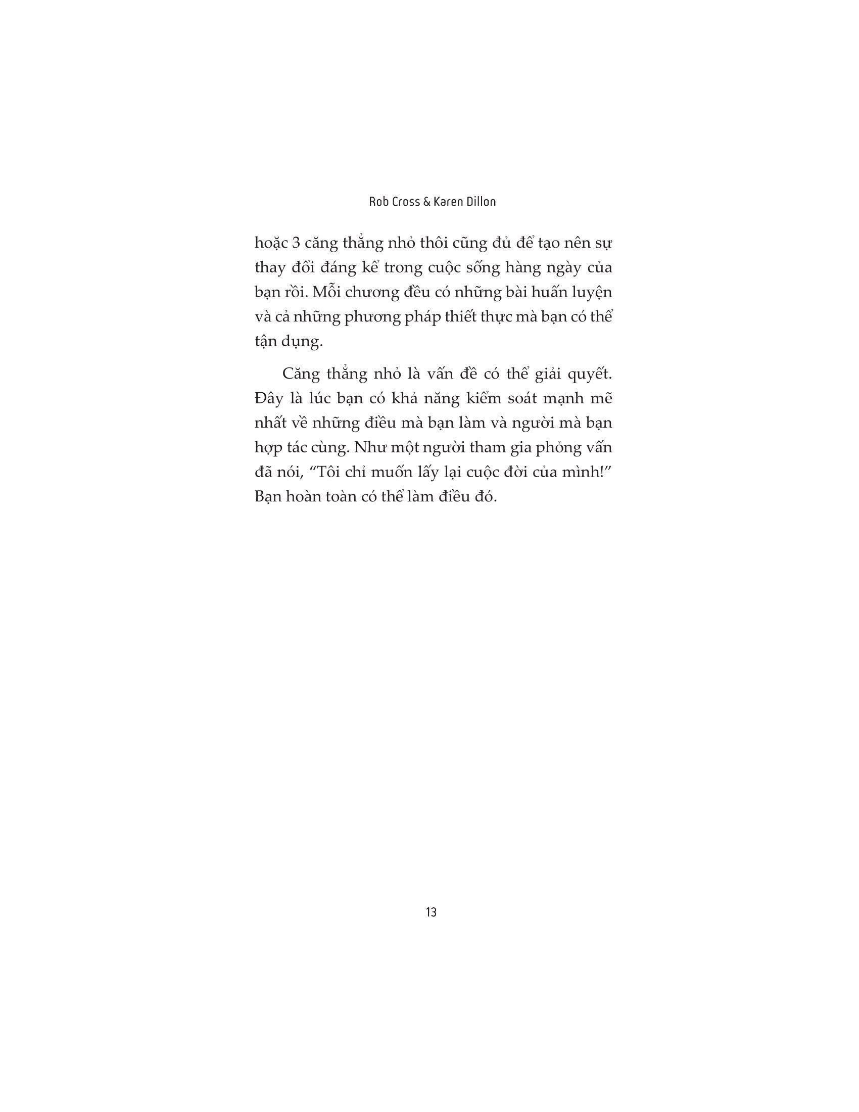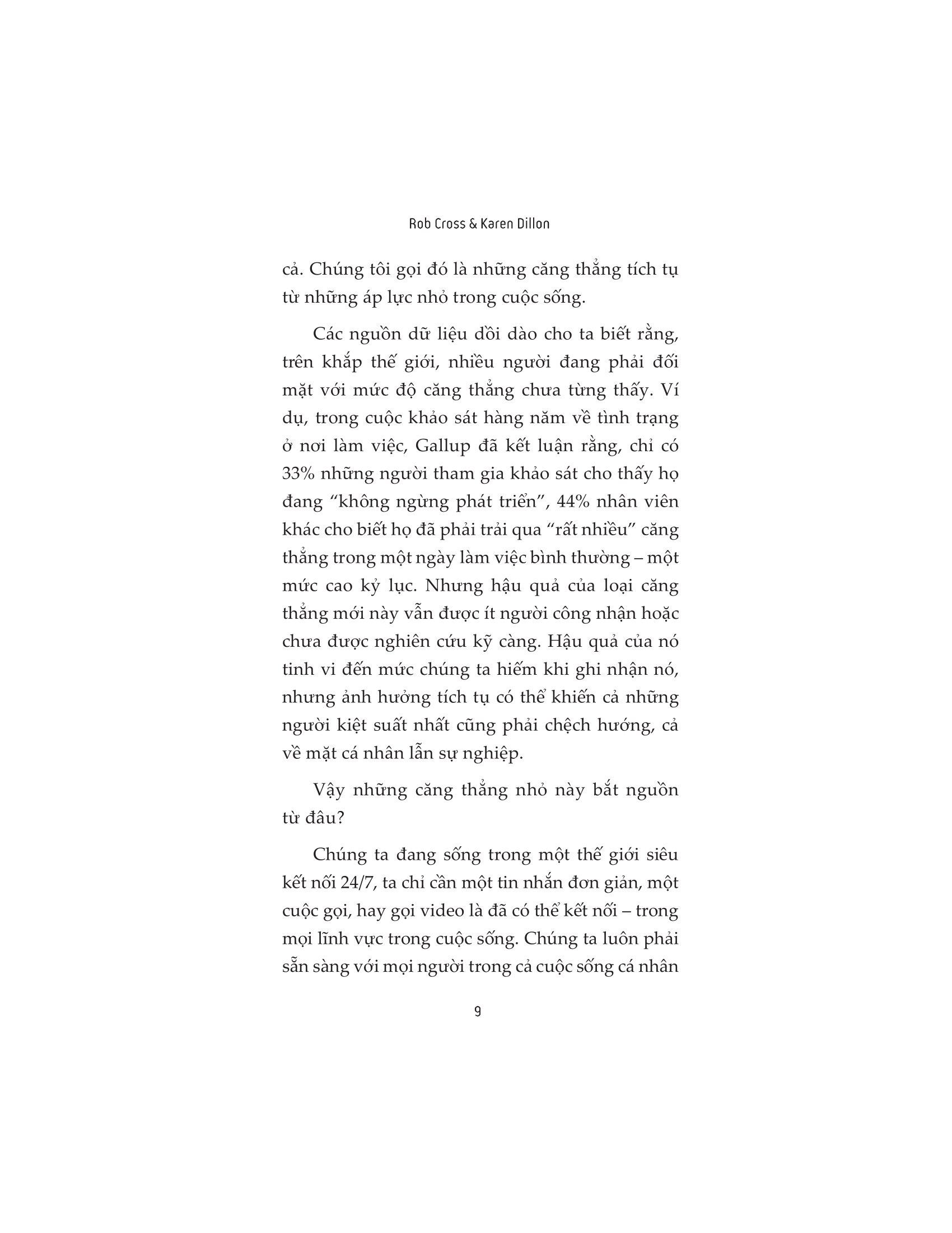 Trong Microstress – Nghệ thuật buông bỏ gánh nặng cảm xúc, Rob Cross và Karen Dillon giải thích những cơ sở khoa học đằng sau hiện tượng này, đồng thời mang đến những phương pháp xây dựng tính kiên cường trước những căng thẳng vi mô và cuối cùng là tìm ra mục đích giúp bạn thoát khỏi thế lực xâm lấn âm thầm đang cướp đi cuộc đời bạn.