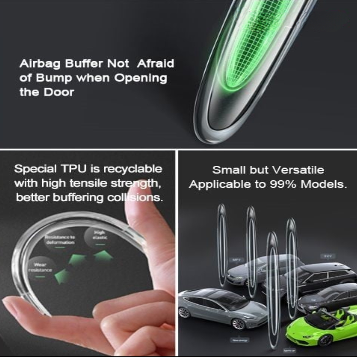 Gắn chắc chắn lên mép cửa trước, sau hoặc gầm xe, bảo vệ khỏi va quẹt với tường, cột, xe bên cạnh. Bộ 4 miếng – Bảo vệ toàn diện