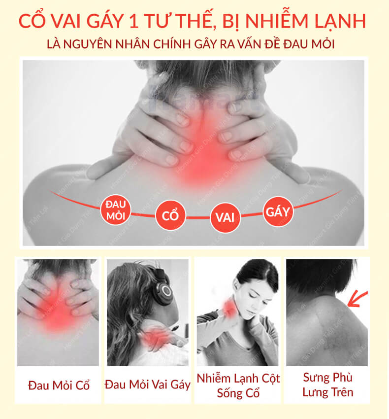 - Hỗ trợ giảm đau mỏi cổ vai gáy, cột sống cổ, có thể sử dụng mọi lúc - khi làm việc, học tập, nghỉ giải lao buổi trưa, lái xe, đi máy bay, xe lửa ...