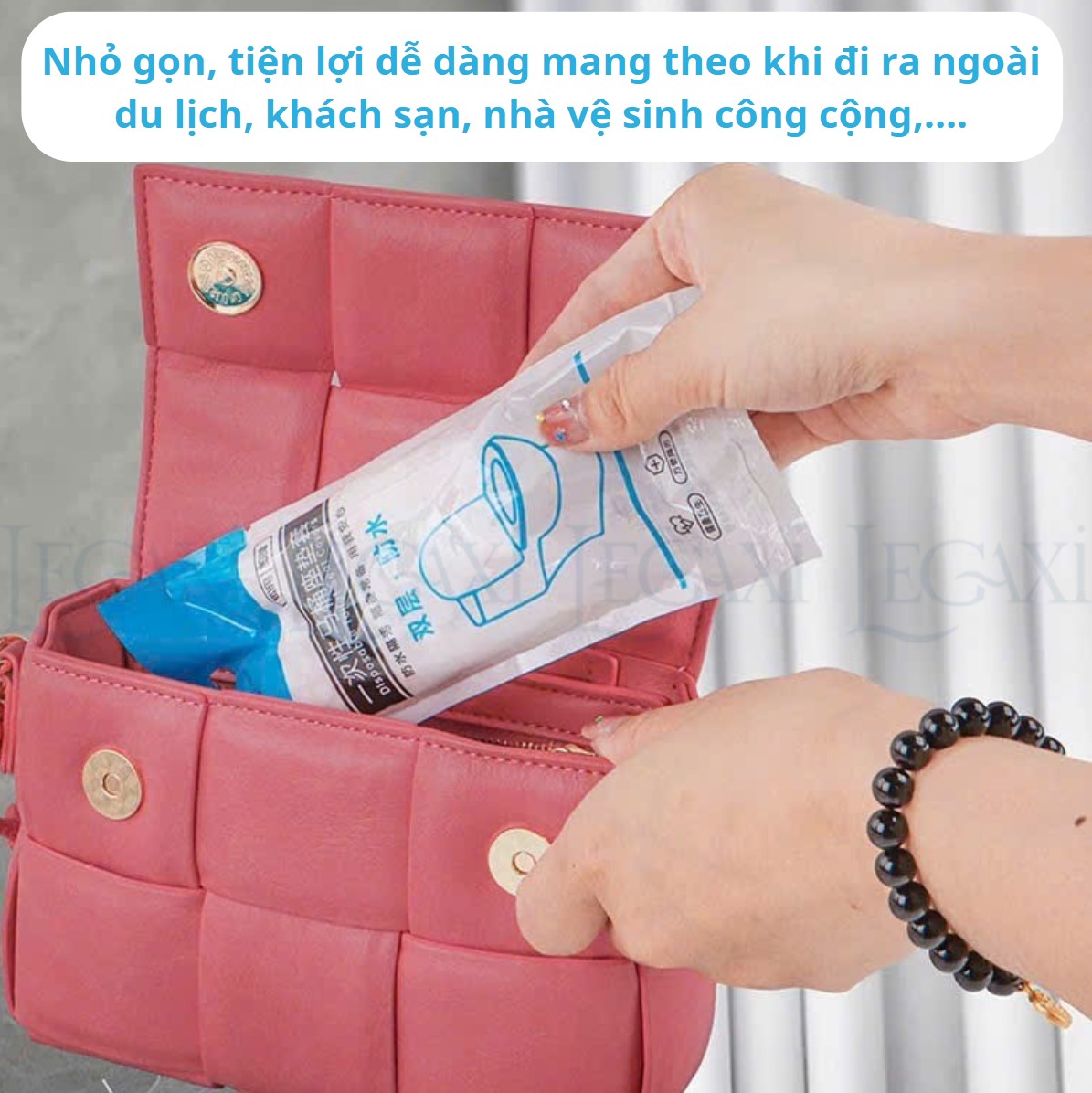 - Đóng gói: 1 miếng/ gói CÔNG DỤNG & ƯU ĐIỂM: ️ Chống thấm nước, không lo thấm ngược ️ Tránh tiếp xúc trực tiếp với vi khuẩn trên nắp toilet ️ Nhỏ gọn, dễ mang theo khi đi công tác, du lịch ️ Thiết kế thun ôm chắc, không bị trượt khi ngồi ️ Dùng xong chỉ cần buộc lại và vứt vào thùng rác ️ Tiết kiệm thời gian và công sức lâu dọn ️ Mềm mại, dễ chịu khi sử dụng – không gây cộm PHÙ HỢP SỬ DỤNG TRONG CÁC TRƯỜNG HỢP Toilet công cộng, nhà vệ sinh tại nơi làm việc Khách sạn, resort, quán cà phê ️ Sân bay, máy bay, tàu xe Du lịch, picnic, đi đường dài Văn phòng, bệnh viện, trung tâm thương mại HƯỚNG DẪN SỬ DỤNG Bước 1: Lấy miếng lót ra khỏi bao Bước 2: Mở rộng và lồng lên phần viền nắp ngồi bồn cầu Bước 3: Chỉnh lại cho vừa với nắp bồn cầu Bước 4. yên tâm sử dụng, sau khi sử dụng hãy bỏ vào sọt rác