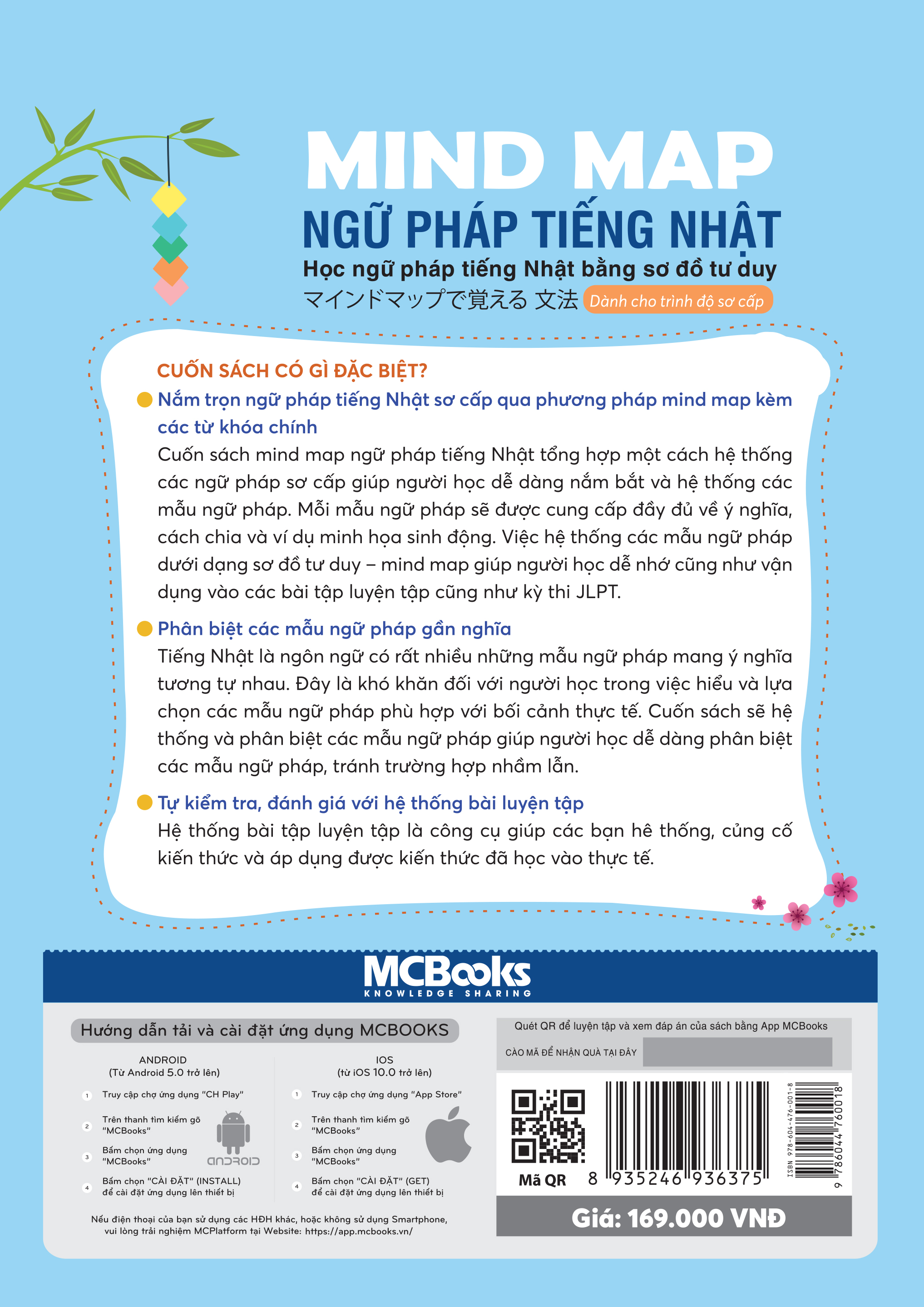 Cuốn sách tổng hợp một cách hệ thống các ngữ pháp sơ cấp giúp người học dễ dàng nắm bắt và được cung cấp đầy đủ về ý nghĩa, cách chia cùng với ví dụ minh họa sinh động. Việc hệ thống các mẫu ngữ pháp dưới dạng sơ đồ tư duy – mindmap giúp người học dễ nhớ cũng như vận dụng vào các bài tập luyện tập hay như kỳ thi JLPT.