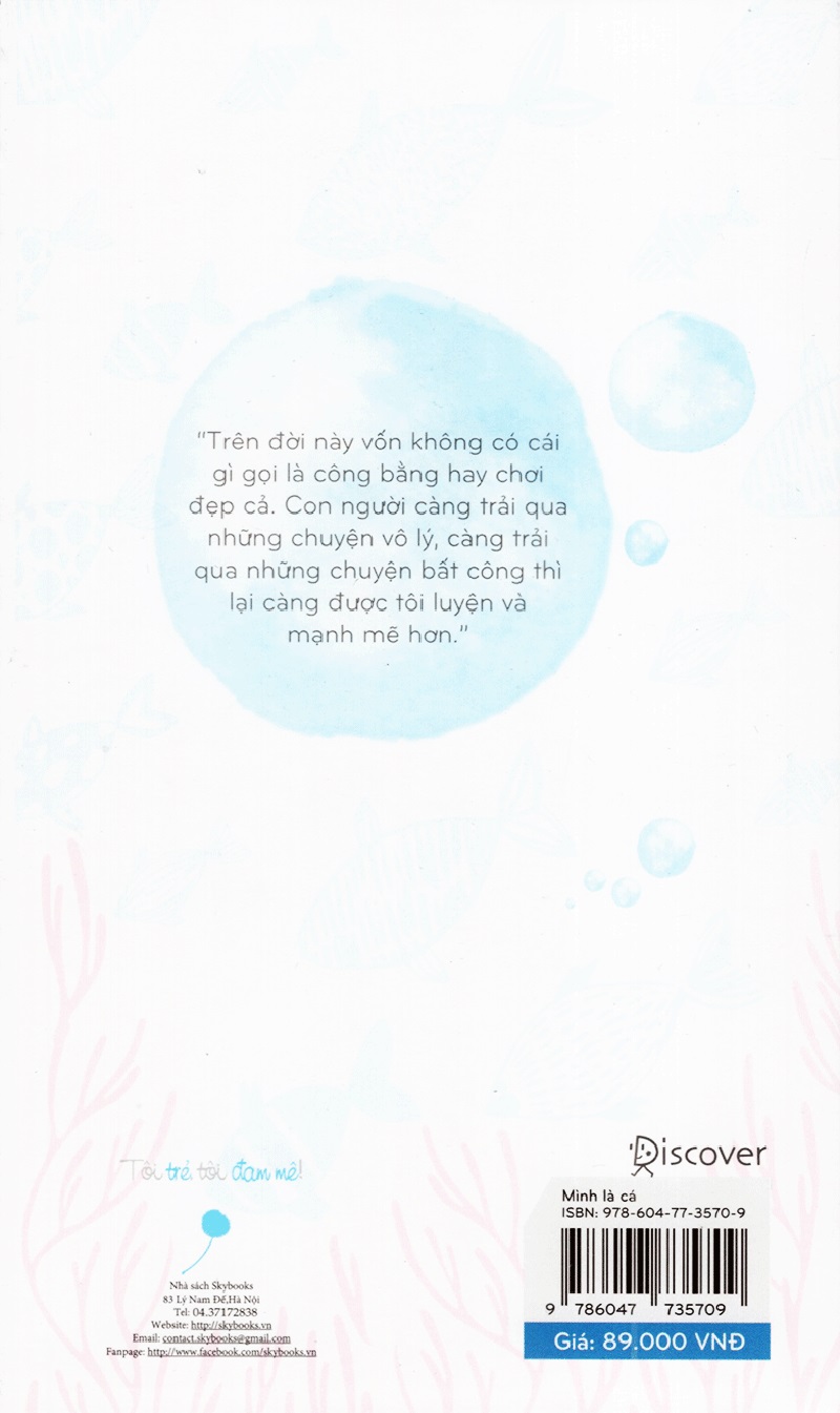 Mình Là Cá, Việc Của Mình Là Bơi Đã bao nhiêu lần bạn tự hỏi về sự tồn tại của bản thân trên thế giới này? Đã bao nhiêu lần bạn thấy mình chìm trong những ý nghĩ tích cực nhất. Đã bao nhiêu lần bạn bỏ lỡ cơ hội đáng lẽ thuộc về bạn? Một cuốn sách hay không chỉ là cuốn sách khiến bạn nhìn thấy chính bản thân mình trong đó mà còn là một cuốn sách giúp bạn trở nên tốt hơn. Đâu đó đã có người nói rằng, nếu điều gì khiến bạn vui vẻ nhưng không khiến bạn tốt lên, hãy từ bỏ nó.“Mình là cá, việc của mình là bơi” sẽ khiến bạn thấy rằng