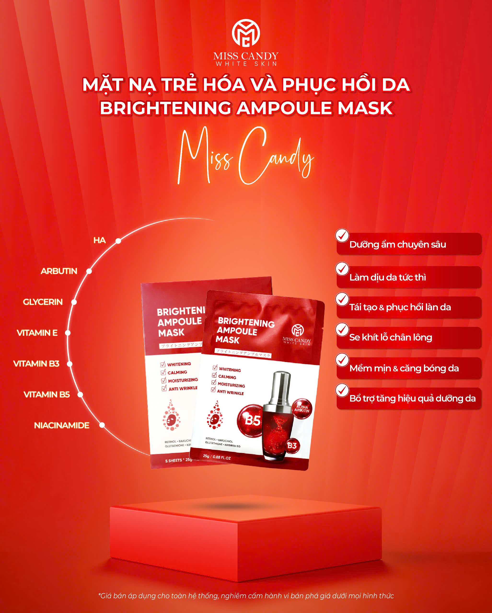 ✨[MISS CANDY] Mặt Nạ Trẻ Hóa & Phục Hồi Da BRIGHTENING AMPOULE MASK Miss Candy (Hộp 5 Miếng x 25g)