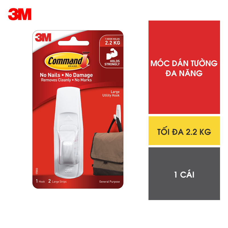 ✨Móc dán tường Command 3M vỉ 1 cái cỡ lớn chịu lực 2.2kg - Dễ sử dụng, độ bền cao, bám cực chắc, tháo cực dễ 17003