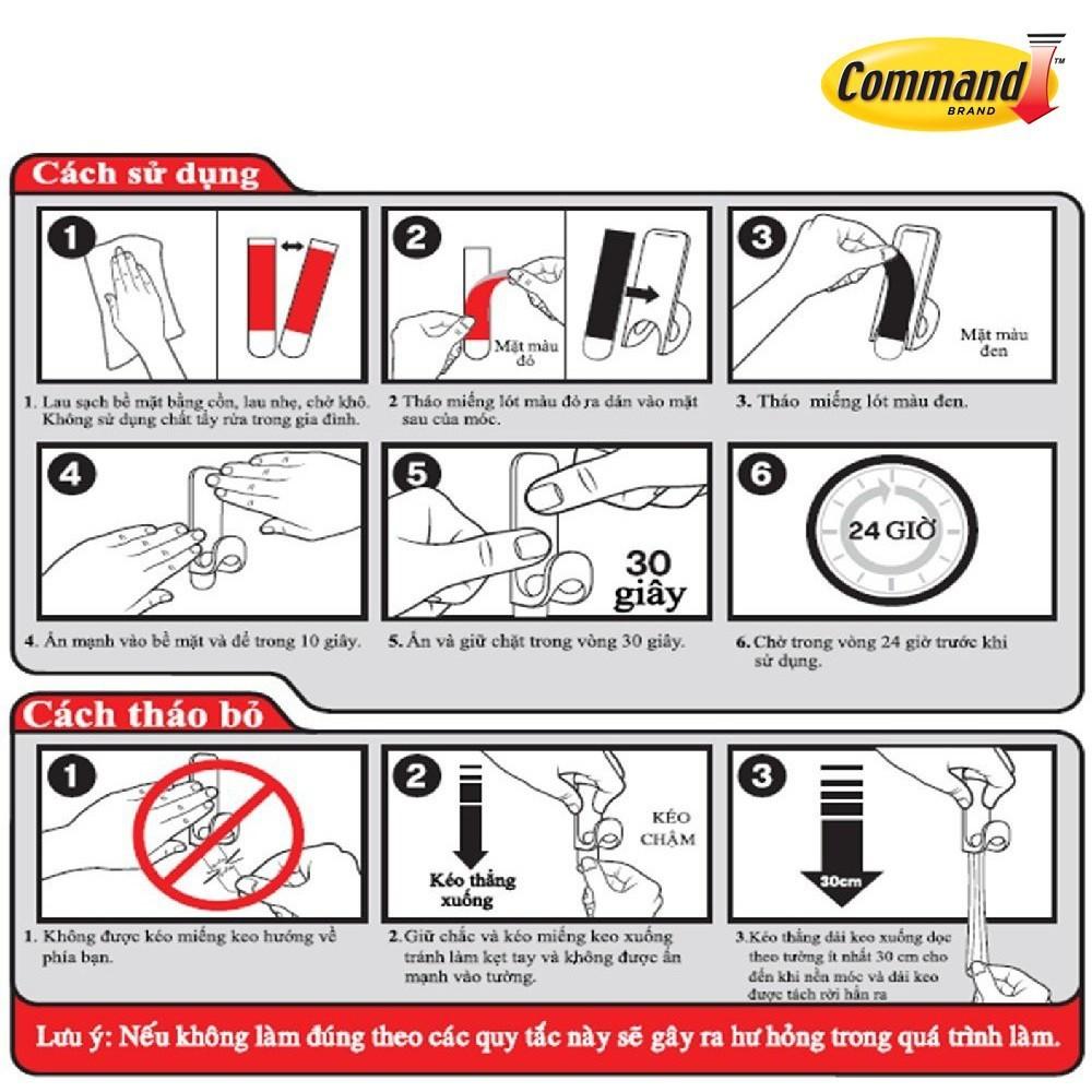 - Kéo thẳng dài keo xuống dọc theo tường ít nhất 30 cm cho đến khi nền móc và dài keo được tách rời hẳn ra Mô tả: Móc Treo Khăn Lớn Command (2.2Kg) Dùng để treo khăn trong nhà tắm hoặc bên ngoài, giúp vật dụng khô thoáng và sạch sẽ • Không làm hỏng bề mặt, không khoan, không bắt vít • Khối lượng chịu được:2,2kg • Dùng trong môi trường ẩm ướt • Thương hiệu: Command - 3M Giới thiệu thương hiệu Command - Móc Dán Tường Kiểu Mỹ - Giải pháp an toàn cho tường nhà bạn - Bám Cực Chắc! Tháo Cực Dễ! Được thành lập từ năm 1902 tại Mỹ và nhanh chóng được ưa chuộng tại 72 quốc gia toàn cầu, Command tự hào luôn dẫn đầu với các sản phẩm đột phá về giải pháp dán tường. • B1: Click vào ô Mã giảm giá để lấy mã • B2: Chọn Lấy mã ngay • B3: Chọn sản phẩm cần mua, click Mua ngay ở dưới cùng • B4: Chọn vào ô Chọn mã vận chuyển/ giảm giá • B5: Chọn mã đã lấy Shop CAM KẾT cung cấp các sản phẩm Chính Hãng ️️ Giao Hàng Toàn Quốc Trong 2-4 Ngày ( Khách muốn nhanh vui lòng bấm chọn dv GHTK )