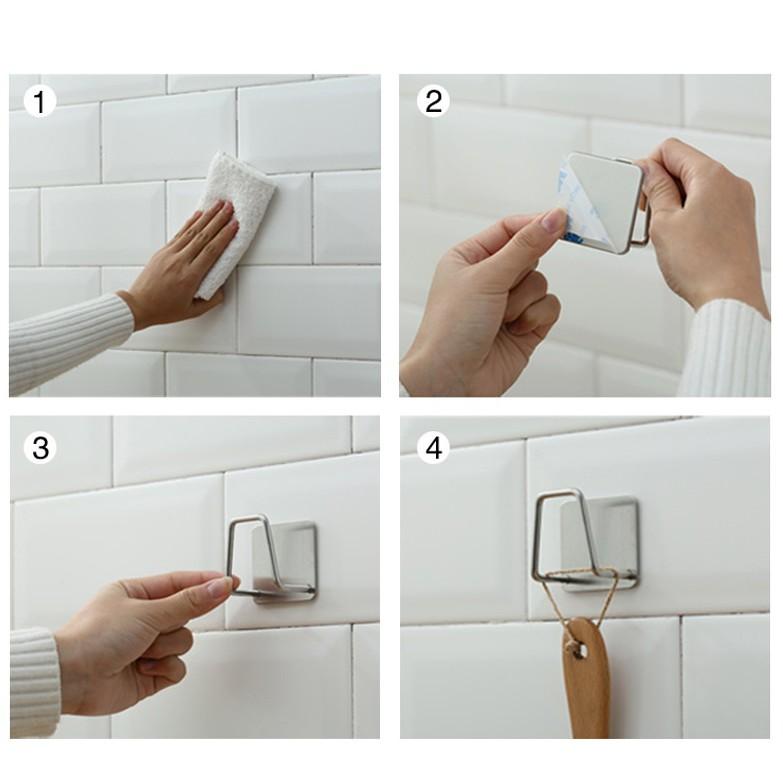 Móc Dán Tường Chịu Lực, Móc Inox, Móc Dính Tường Siêu Dính, Treo Đồ Đa Năng, Tiện Dụng Gia Đình - Móc dán tường chịu lực sử dụng miếng dán 3M, không cần khoan đục.