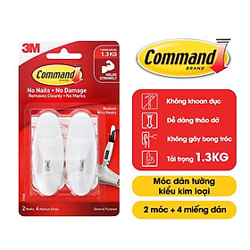 ✨Móc dán tường đầu kim loại Command 3M vỉ 2 cái cỡ vừa chịu lực 1.3kg - Độ bền cao, bám cực chắc, tháo cực dễ 17068