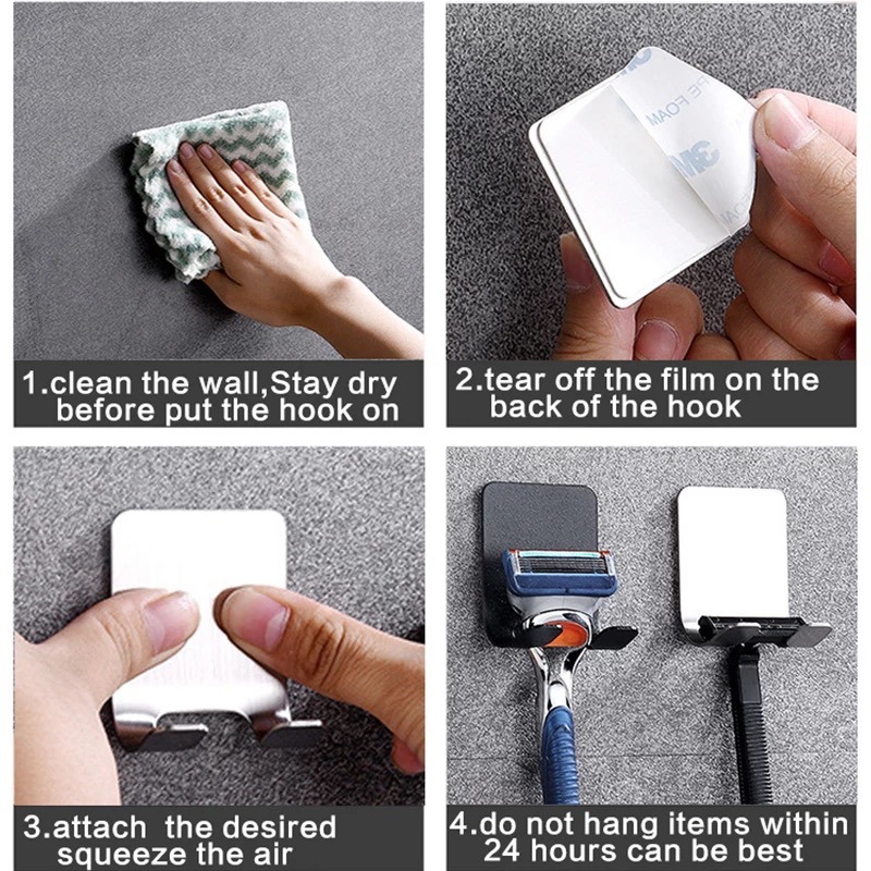 Móc Inox, Treo Đồ Đa Năng, Móc Dán Tường Treo Dao Cạo Râu Cho Phòng Tắm, Miếng Dán 3M Siêu Dính