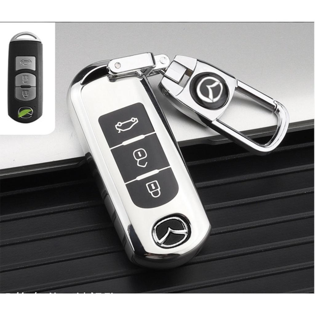 Móc khóa kèm ốp bảo vệ chìa khóa xe Mazda 6, Mazda 3, Mazda Cx8, Mazda 2020, Mazda 2021 nhựa mềm TPU mạ kim loại sáng bóng