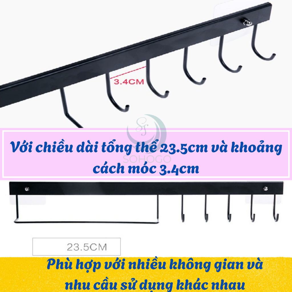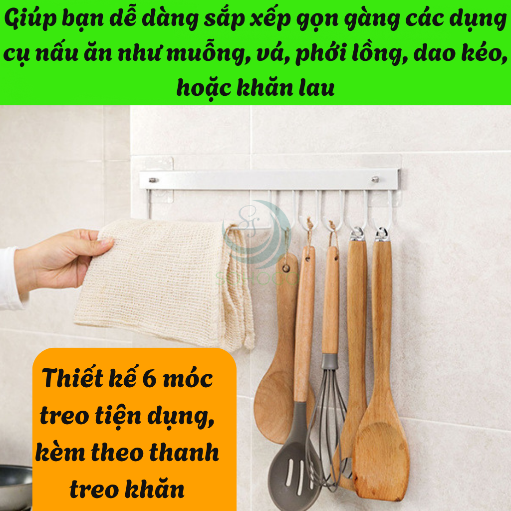 Mua tại TiktokThanh Móc Treo Đồ Siêu Dính Dán Tường Nhà Tắm, Nhà Bếp, Tủ Quần Áo Mô tả chi tiết sản phẩm: Móc treo dán tường đa năng với thiết kế 6 móc treo tiện dụng, kèm theo thanh treo khăn, giúp bạn dễ dàng sắp xếp gọn gàng các dụng cụ nấu ăn như muỗng, vá, phới lồng, dao kéo, hoặc khăn lau. Với chiều dài tổng thể 23.5cm và khoảng cách móc 3.4cm, sản phẩm phù hợp với nhiều không gian và nhu cầu sử dụng khác nhau. Ưu điểm nổi bật: