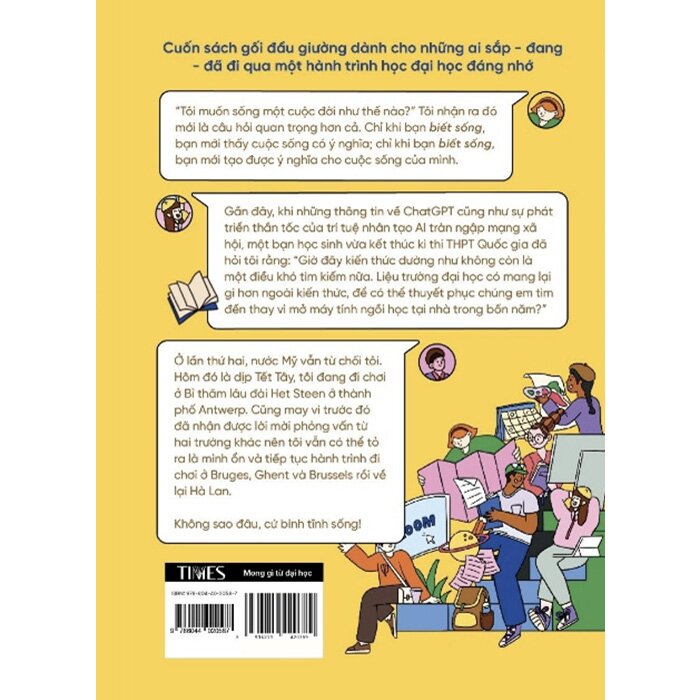 Mỗi bài viết là một câu chuyện và một hành trình thích nghi, làm quen và học hỏi trong suốt những năm đại học và sau đó, từ lúc nhận được giấy báo trúng tuyển, ngày đầu nhập trường với bao thói quen và dự định, rồi tốt nghiệp ra trường và bắt đầu bươn chải với cuộc đời. Có những khi thất vọng vì không biết mình là ai, mình thực sự muốn gì, cuộc đời sao lại không như mình tưởng tượng.