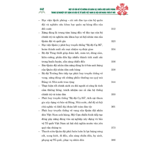 Cuốn sách Một số vấn đề về đường lối quân sự, chiến lược quốc phòng trong sự nghiệp xây dựng và bảo vệ Tổ quốc Việt Nam xã hội chủ nghĩa thời kỳ mới của đồng chí Tổng Bí thư Nguyễn Phú Trọng, Bí thư Quân ủy Trung ương thể hiện tư tưởng, quan điểm, tư duy mang tầm chiến lược của đồng chí về định hướng đường lối xây dựng và bảo vệ Tổ quốc trong thời kỳ mới, về nhiệm vụ quân sự, quốc phòng trong giai đoạn đất nước đẩy mạnh công cuộc đổi mới, phát triển kinh tế - xã hội, hội nhập quốc tế ngày càng sâu rộng.