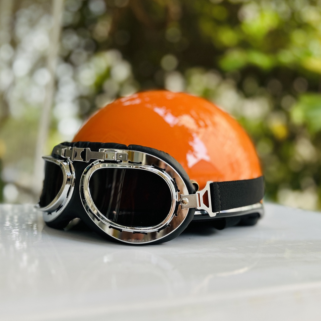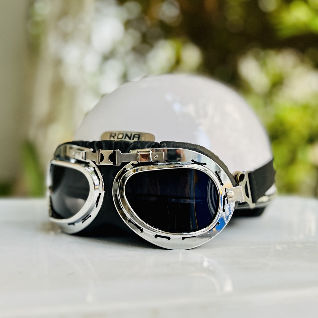Mũ bảo hiểm nửa đầu Rona haly viền bạc kèm kính phi công bạc cho nam và nữ đi xe máy