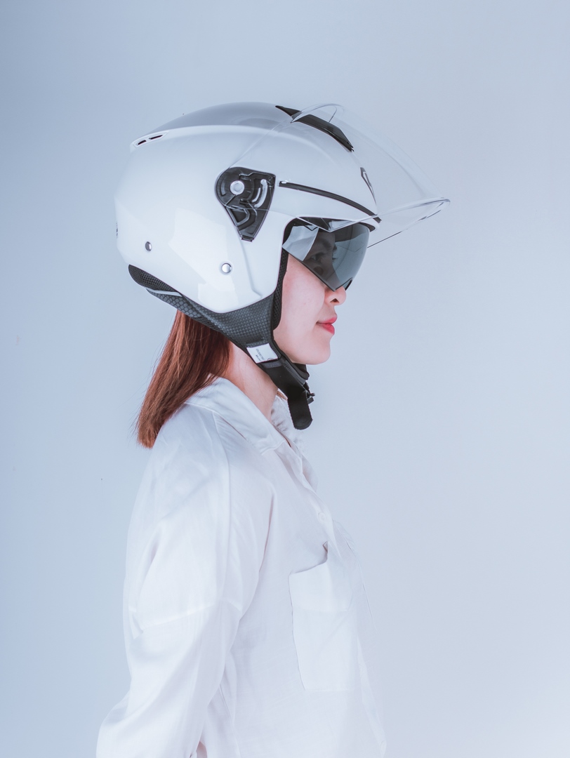 THIẾT KẾ THÔNG MINH - Phong cách thiết kế: mũ kiểu 3/4 kèm kính dài, mũ được thiết kế dáng tròn, đi kèm 2 miếng ốp má, giúp tăng thêm hiệu quả bao phủ, bảo