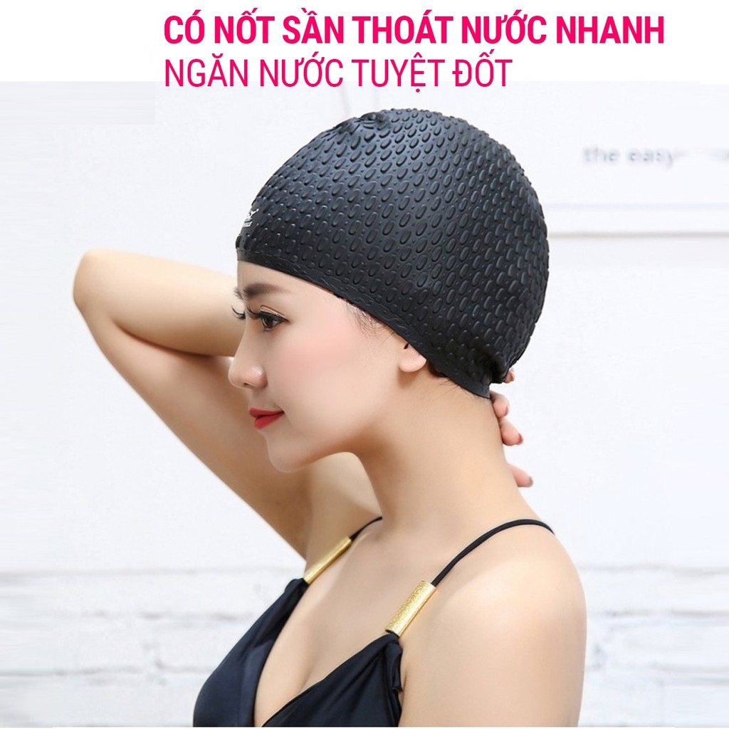 Mũ bơi người lớn làm từ silicone chống thấm nước – giúp tóc bạn luôn khô ráo.