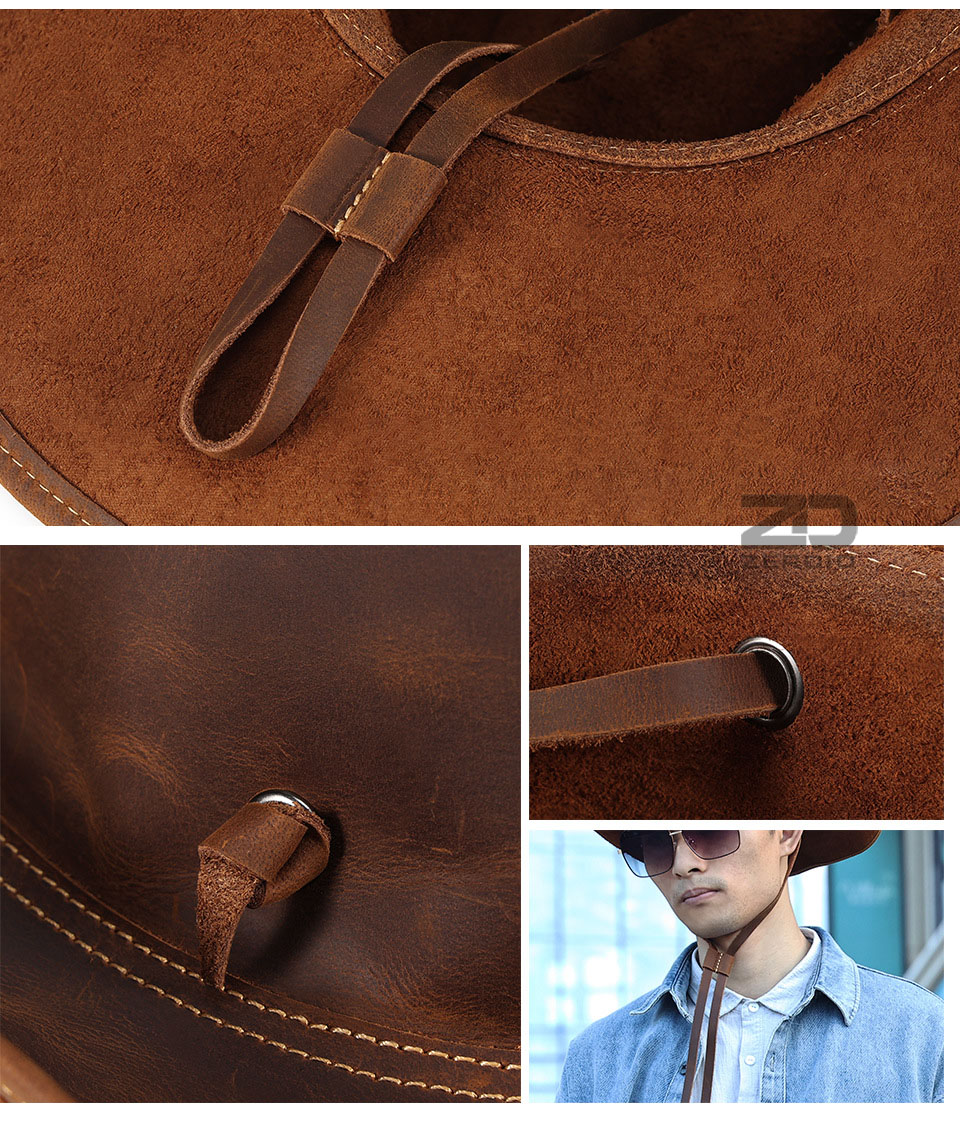 Ảnh chi tiết mũ cao bồi da bò thật MP030