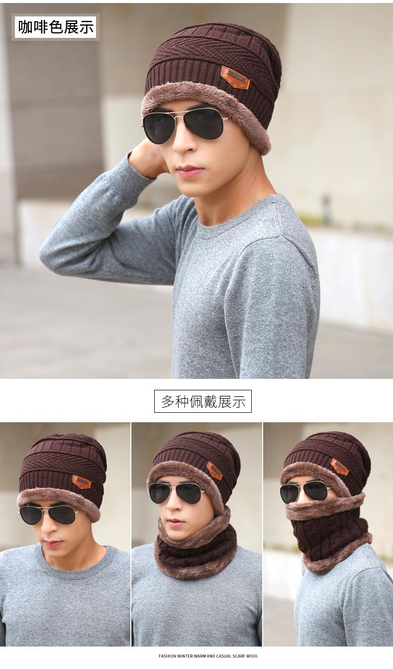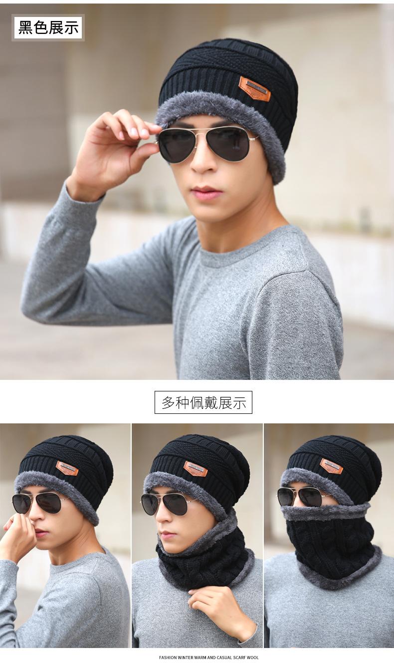 ✨Mũ len lót lông kem khăn len lót lông chụp cổ mũ của đàn ông mùa đông Hàn Quốc sóng len mũ dày đan mũ mùa thu và đội mũ mùa đông MS57