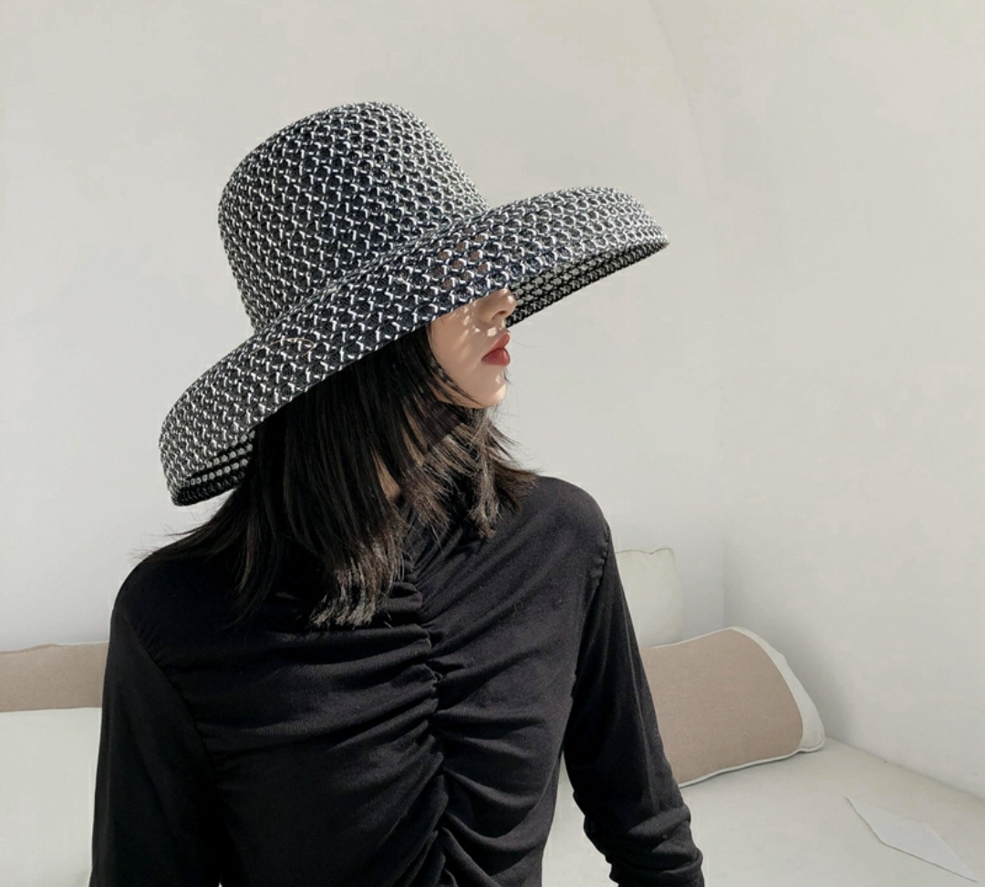 Mũ cói rơm vành phẳng nữ mùa hè phiên bản Hàn Quốc chống nắng UV cho kỳ nghỉ Nón đi biển Paris thời trang hàng đầu Pháp Chất liệu cói