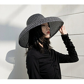 ✨Mũ nữ rộng vành kiểu Pháp đai đen Nón đi biển chống nắng UV thoáng mát dona22060101