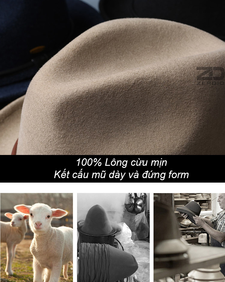 Mũ Phớt Nam Cổ Điển Hàng Hiệu, Lông Cừu Cao Cấp - Zerdio #muphotnam #mufedora #muphot #nonphot
