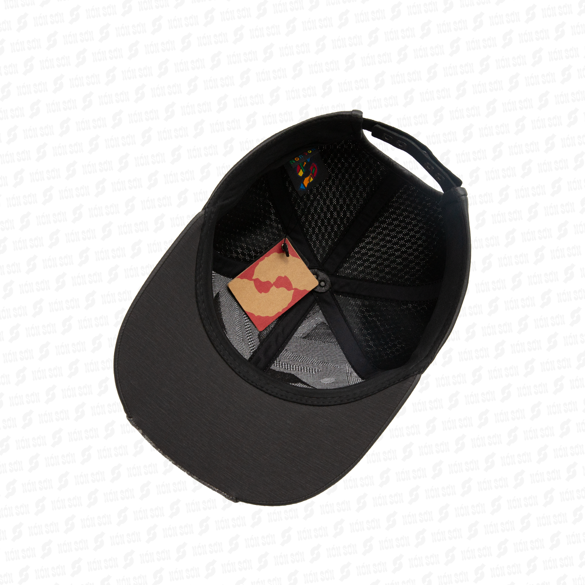 - Sử dụng kẹp phơi vào đai bên trong nón (vị trí giữa lưỡi trai), sao cho lưỡi nón hướng phía trên và dây đuôi hướng phía dưới.