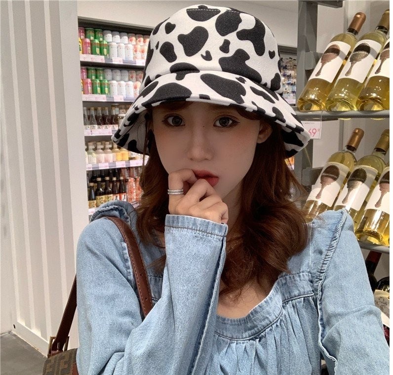 Mũ vành 2 mặt, bucket hat họa tiết bò sữa dễ thương