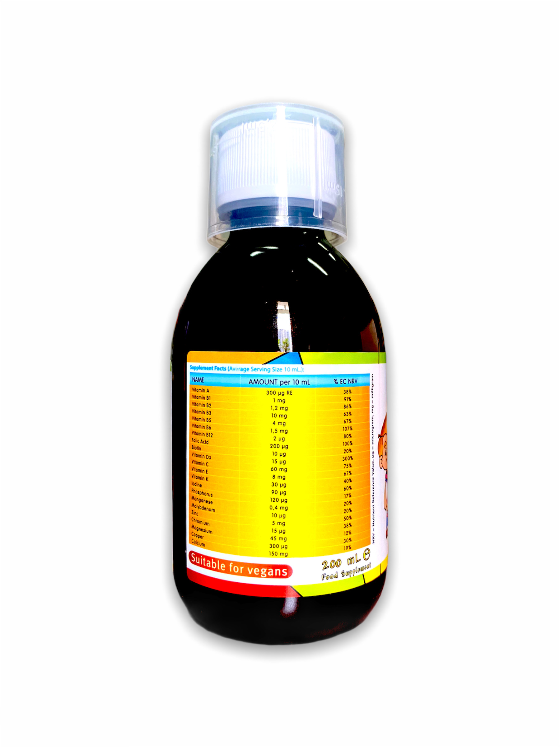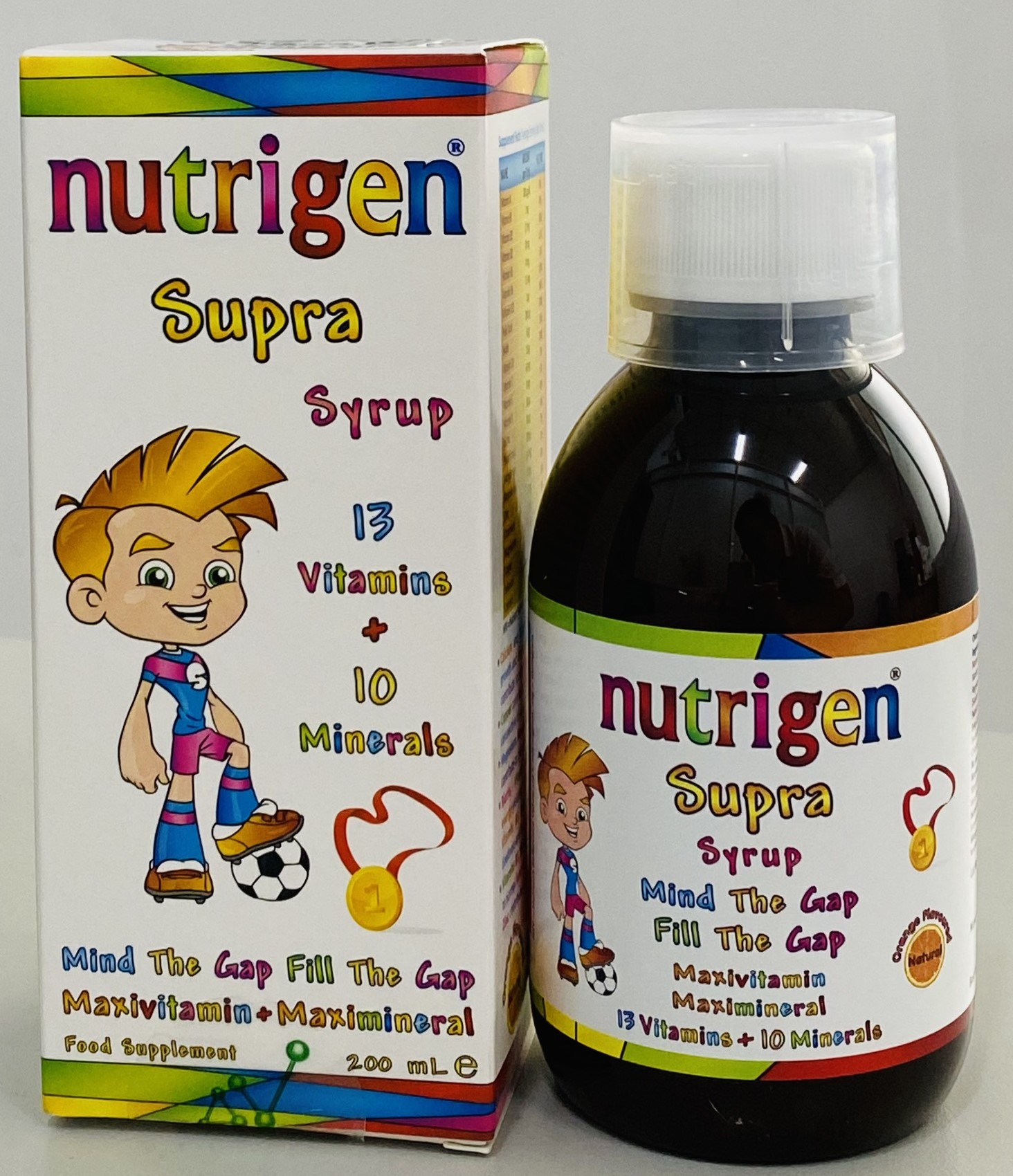 Giới thiệu Bữa ăn trong cuộc sống hiện đại có thể là nguyên do của việc trẻ hấp thu thiếu nhiều loại vitamin và khoáng chất, Nhiều chuyên gia về y học, dinh dưỡng và giáo dục cho rằng việc thiếu dinh dưỡng trong bữa ăn hằng ngày đã ảnh hưởng đến khả năng học vấn của trẻ em ở phương Tây. Khả năng học vấn tiến bộ thường đi đôi với chế độ dinh dưỡng được cải thiện tốt. Công thức độc nhất của Nutrigen Supra Maxivitamin Maximineral Syrup cung cấp đến 13 vitamin và 10 khoáng chất thiết yếu giúp tăng cường sự phát triển, giúp trẻ lớn khỏe mạnh và hỗ trợ các chức năng của cơ thể.  Thành phần Calci lactat, mononatri phosphat, magnesi sulfate, L-ascorbic acid (vitamin C), DL-alpha-tocopheryl acetat (vitamin E), kẽm sulfat monohydrat, niacinamid (vitamin B3), cholecalciferol (vitamin D3), calci D-pantothenat (vitamin B5), retinyl palmitat (vitamin A), mangan gluconat, đồng gluconat, pyridoxin hydroclorid (vitamin B6), riboflavin (vitamin B2), thiamin hydroclorid (vitamin B1), phytomenadion (vitamin K), acid folic, kali iod, crom clorid, natri selenit, natri molybdate, D-biotin, cyanocobalamin (vitamin B12). Thành phần khác: Nước khử ion, hương cam tự nhiên, beta-caroten, chất làm dày (natri carboxymethyl cellulose, xanthan gum), chất điều chỉnh acid (acid citric, trinatri citrat dihydrat), chất bảo quản (natri benzoat), chất tạo ngọt (sucralose). Công dụng Giúp bổ sung 13 vitamin và 10 khoáng chất cho cơ thể. Hỗ trợ tăng cường sức khỏe cho trẻ nhỏ. Đối tượng sử dụng Trẻ biếng ăn, gầy yếu, mệt mỏi, sức đề kháng kém, trẻ trong thời kỳ phát triển có nhu cầu bổ sung vitamin và khoáng chất. Hướng dẫn sử dụng Khuyến cáo hàng ngày: – Trẻ lớn hơn 3 tuổi: 15ml mỗi ngày. – Trẻ 2-3 tuổi: 10ml mỗi ngày. – Trẻ 1-2 tuổi: 10ml mỗi ngày – Trẻ 6 tháng- 12 tháng: 5ml mỗi ngày. Khuyến cáo Không sử dụng quá liều hàng ngày. Không sử dụng thay thế cho chế độ ăn bình thường. Không sử dụng cho người mẫn cảm với bất kì thành phần nào của sản phẩm, dầu cá, sữa, trứng và các loại hạt. Thực phẩm này không phải là thuốc và không có tác dụng thay thế thuốc chữa bệnh. Lắc kỹ trước khi dùng. NSX: Xem trên hộp. HSD: 36 tháng kể từ ngày sản xuất. HSD in trên hộp. Bảo quản: Nơi khô mát, tránh xa tầm tay trẻ em. Sau khi mở nắp, bảo quản trong ngăn mát tủ lạnh. Sử dụng trong vòng 06 tháng. Quy cách đóng gói: Hộp 1 lọ 200ml Xuất xứ: Vương Quốc Anh Nhà sản xuất: Vivatinell Ltd. Unit 138, Bradley Hall Trading Estate, Bradley Lane, Standish, Wigan, WN6 0XQ, Vương Quốc Anh Thương nhân chịu trách nhiệm về chất lượng: Công ty Cổ phần Dược phẩm AMVI (Amvipharm) Lô B14-3,4 đường N13, khu công nghiệp Đông Nam, Hòa Phú, Củ Chi, TP.HCM Số ĐKSP: 4246/2020/ĐKSP Số XNQC: 2177/2020/XNQC-ATTP