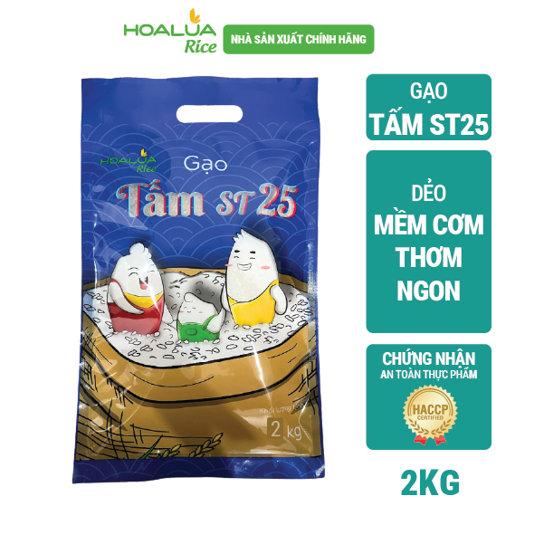 ĐẶC TÍNH: Gạo ST25 Hoa Lúa với hạt gạo thon dài, đều và trắng trong, không bạc bụng. Cơm chín cơm mềm dẻo, có mùi thơm đặc trưng. Khi để nguội cơm vẫn giữ được độ ngon và dẻo, không bị khô cứng. Đóng gói theo tiêu chuẩn Châu Âu HACCP.