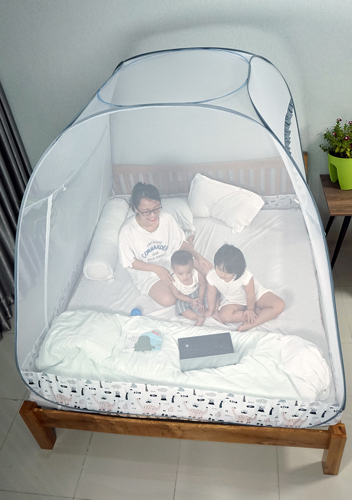 Kiểu dáng: Đỉnh rộng, có 2 cửa ra vào, có viền chân là từ vải nylon thay vì lưới mùng ( giúp bảo vệ 100% khi để tay chân chạm sát mùng)