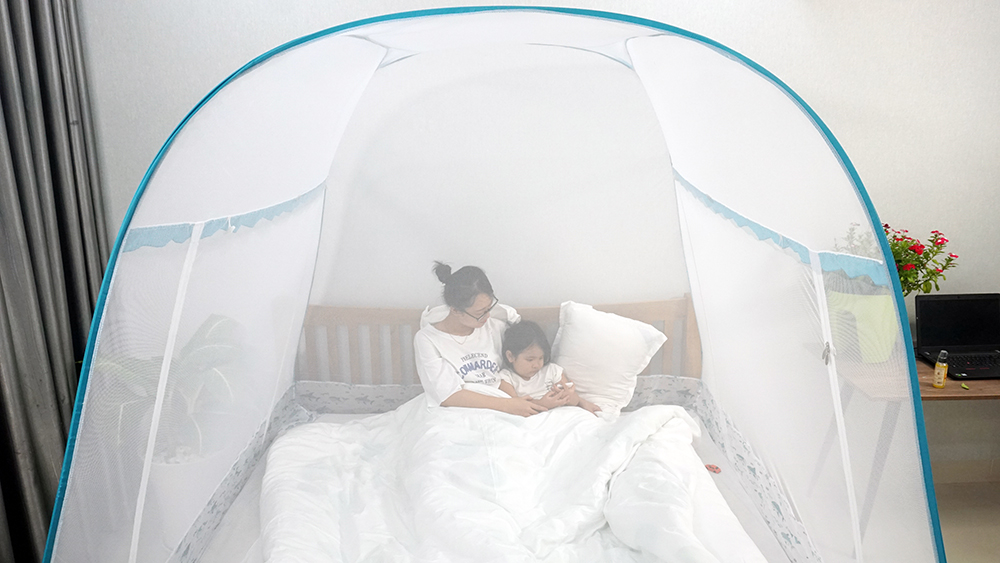 Hướng dẫn sử dụng mùng chụp tự bung đỉnh rộng Mộc Miên loại 2 CỬA - mungmocmien.com - 0906.918.320