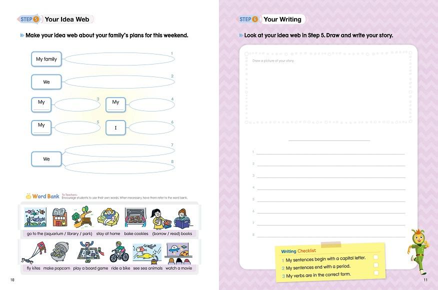 My First Writing is a fun and easy writing series for young EFL beginners designed to help them develop sentence building skills. Throughout the series, students will learn to organize their ideas and practice writing sentences within a context of fun and interesting topics. They will also expand their writing tools such as vocabulary and grammar knowledge through fun activities. Upon finishing the My First Writing series, students will be equipped with basic writing skills for paragraph and essay writing.