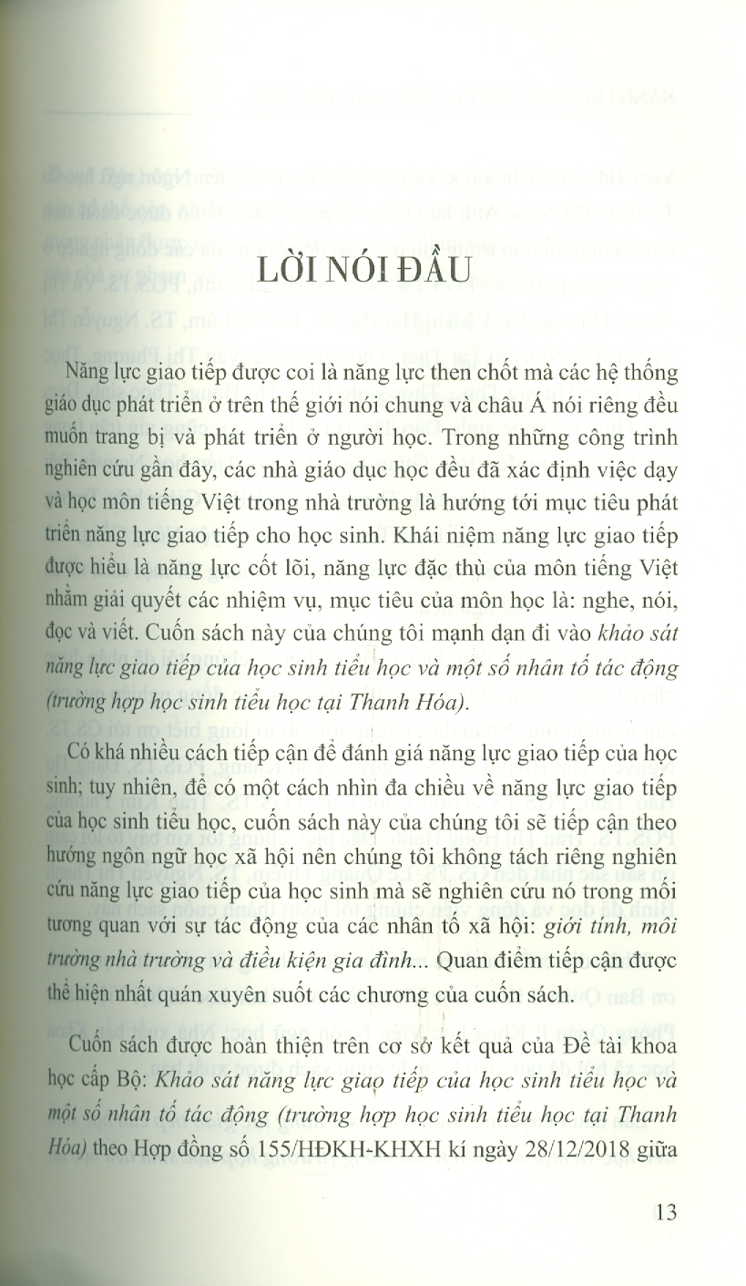 ✨Năng Lực Giao Tiếp Của Học Sinh Tiểu Học Và Các Nhân Tố Tác Động (Nghiên Cứu Trường Hợp Học Sinh Tiểu Học Tại Thanh Hoá) (Sách chuyên khảo) - Viện Hàn lâm Khoa học Xã hội Việt Nam - Viện Ngôn ngữ học; TS. Bùi Thị Ngọc Anh chủ biên