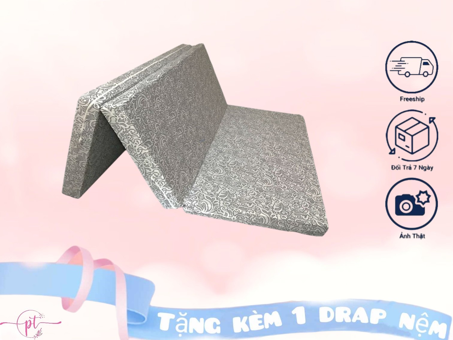 - Đệm có thiết kế gấp 3 tiện dụng, phù hợp với các không gian nhà hay phòng chật hẹp hiện nay giúp thoải mái cất giữ khi không sử dụng và di chuyển dễ