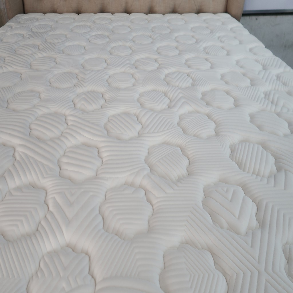 - Bề mặt nệm được chằn bằng vải dệt kim co giãn nhập ngoại dày dặn, kết hợp với mousse đàn hồi cao tạo sự êm ái, mềm mại khi tiếp xúc. - Hoa văn