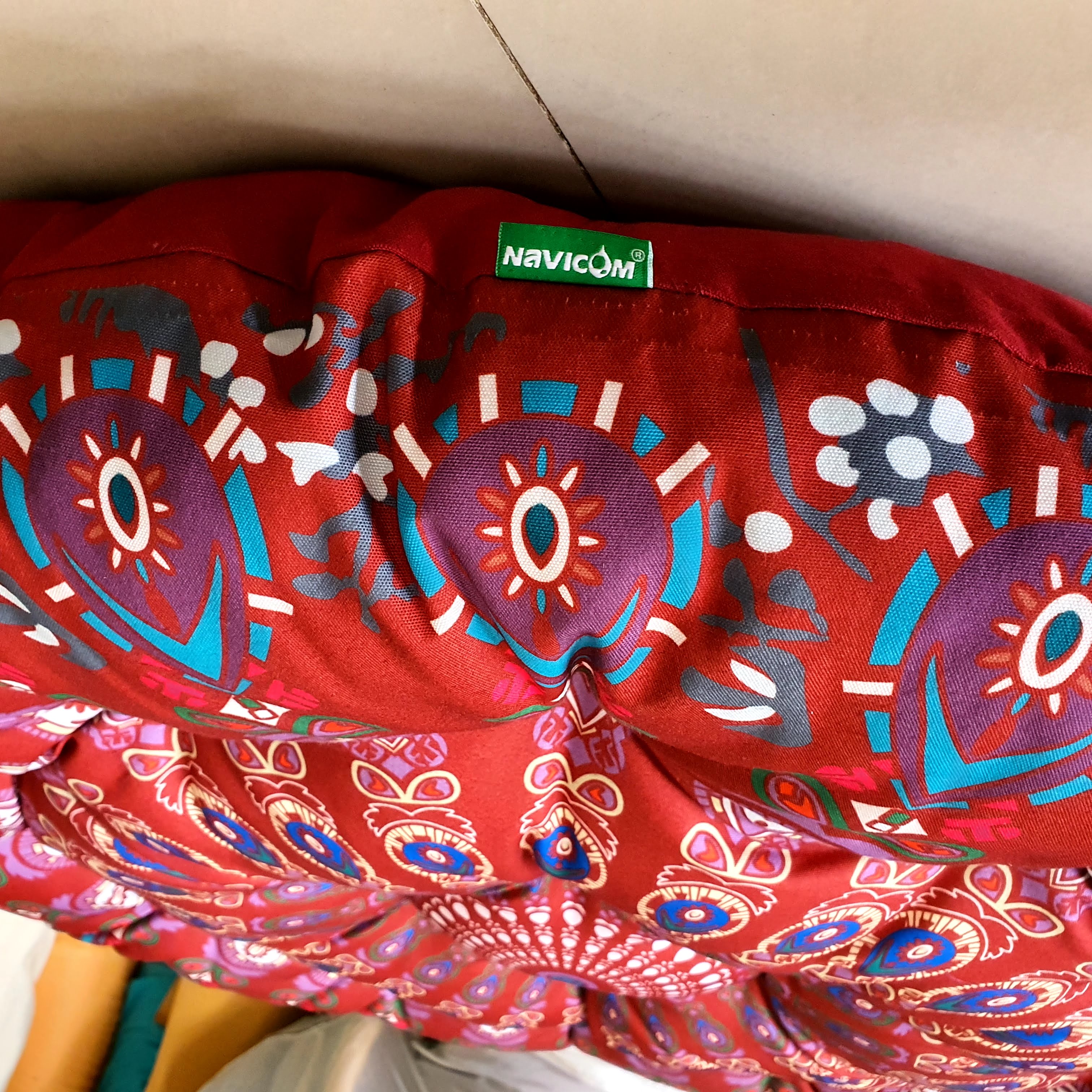 Nệm papasan phiên bản độc quyền NAVICOM Chất liệu : vải bố canvas được in hoa văn đặc sắc và ấn tượng Kích thước nệm : 1,25m dành cho ghế papasan đường kính 1m Đặc biệt :