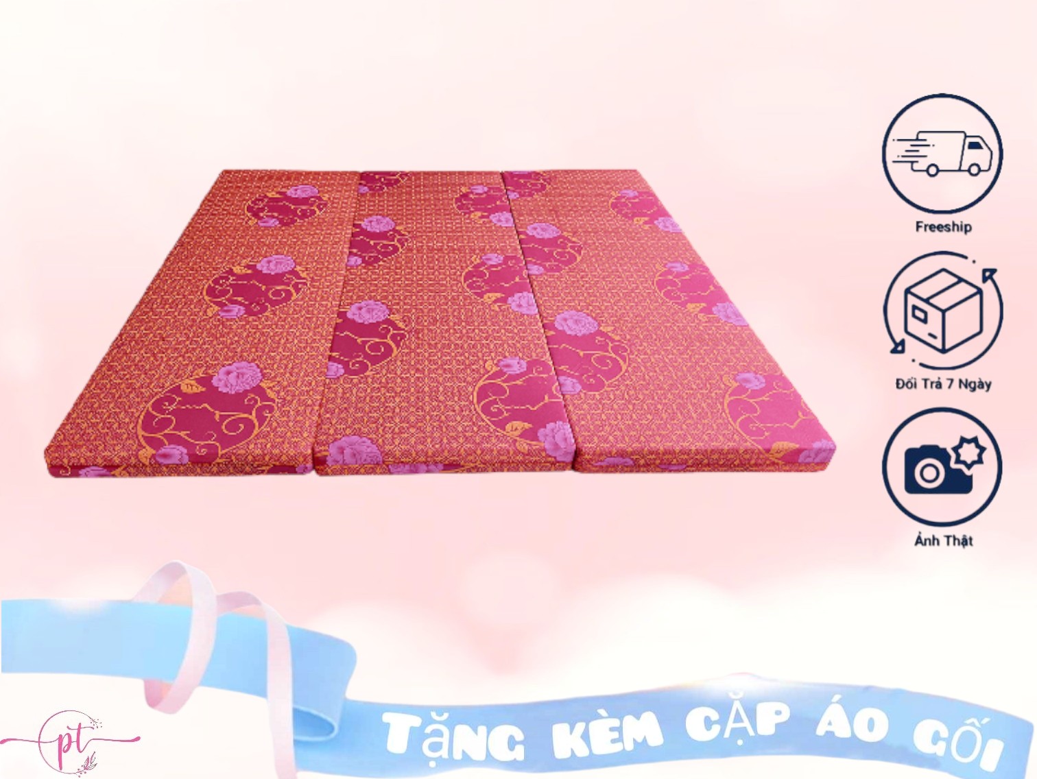 ✨Nệm PE Hàn Quốc Cao Cấp Gấp 3 ( 1m4 x 1m95 x 3cm) Giao Màu Ngẫu Nhiên - Tặng Kèm Cặp Áo Gối