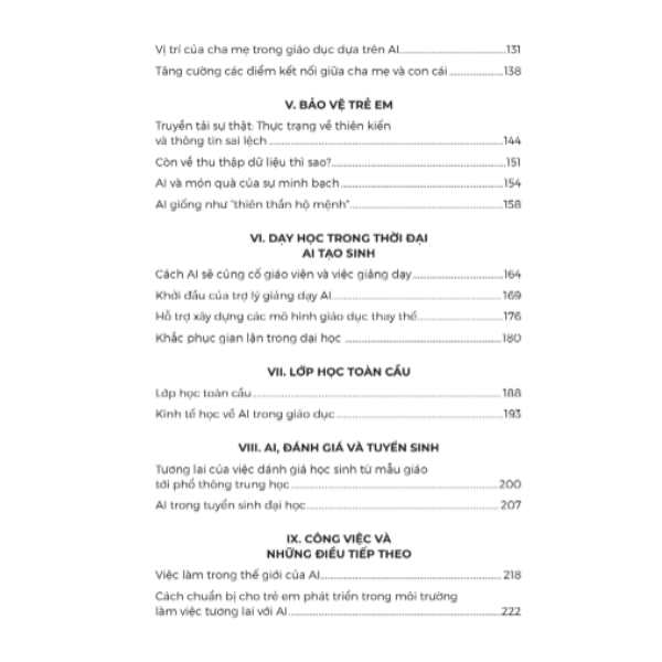 Cuốn sách mang lại cái nhìn tổng thể về AI trong giáo dục, với những phân tích và giải pháp để tận dụng sức mạnh của AI một cách hiệu quả và có trách nhiệm. Vì vậy, cuốn sách dành cho những ai quan tâm đến tương lai giáo dục đều nên đọc và rộng ra hơn là những ai đang theo đuổi việc AI sẽ thay đổi cuộc sống của chúng ta.