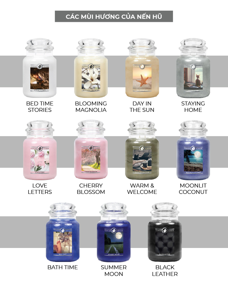 Trọng lượng: 540g Thời gian cháy: 95h Hương: bergamot/ sandal wood/ papaya orchid iris/ peony/ ocean mist Màu sắc: xanh, hồng, xám, tím - Công dụng: Trang trí cho không gian trong nhà (phòng bếp,