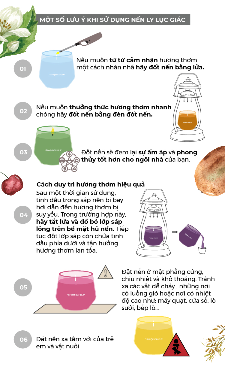 Nến thơm In Heaven mang hương thơm của hoa và gỗ - Nhẹ nhàng, hơi cá tính, không ngọt Nến thơm Sweet Delight mang hương thơm của hoa và trái cây - Ngọt, chua nhẹ