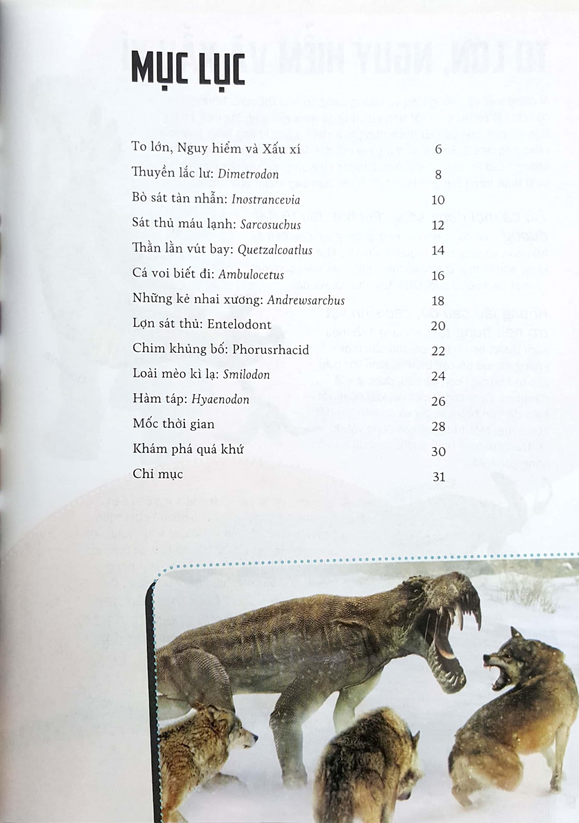 Bộ sách sử dụng hình ảnh CGI (mô phỏng bằng máy tính) để so sánh mức độ khổng lồ và nguy hiểm của các loài sinh vật thời tiền sử nếu chẳng may chúng còn sống và tồn tại chung một thời đại với chúng ta. NHỮNG KẺ SĂN MỒI HUNG TỢN giới thiệu những gã săn mồi dễ sợ và mạnh mẽ hơn bất kì loài ăn thịt nào ngày nay, những loài thủy tổ khát máu này mà còn sống thì chúng ta không có đường chống cự, không chỉ vì chúng to lớn mà còn có cấu tạo siêu việt về khung xương, cơ hàm lẫn cơ chế tự vệ, tấn công; một cỗ máy nghiền đúng nghĩa .