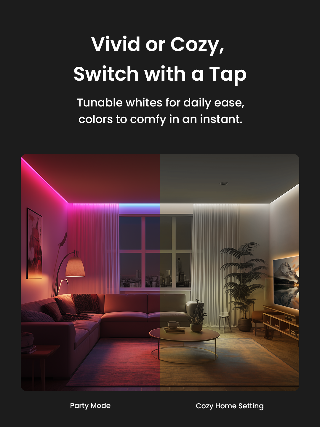 Lightstrip Pro cung cấp nhiều công thức sử dụng cho nhiều kịch bản khác nhau như: mặt trời mọc, hoàng hôn, hẹn hò đêm, chiếu phim, bữa tiệc sinh nhật, lãng mạn, đèn flash thông báo, nến lung linh, …. Chỉ một cảm ứng đơn giản, Lightstrip Pro sẽ chọn cho bạn 1 hoàn cảnh phù hợp nhất với tâm trạng.