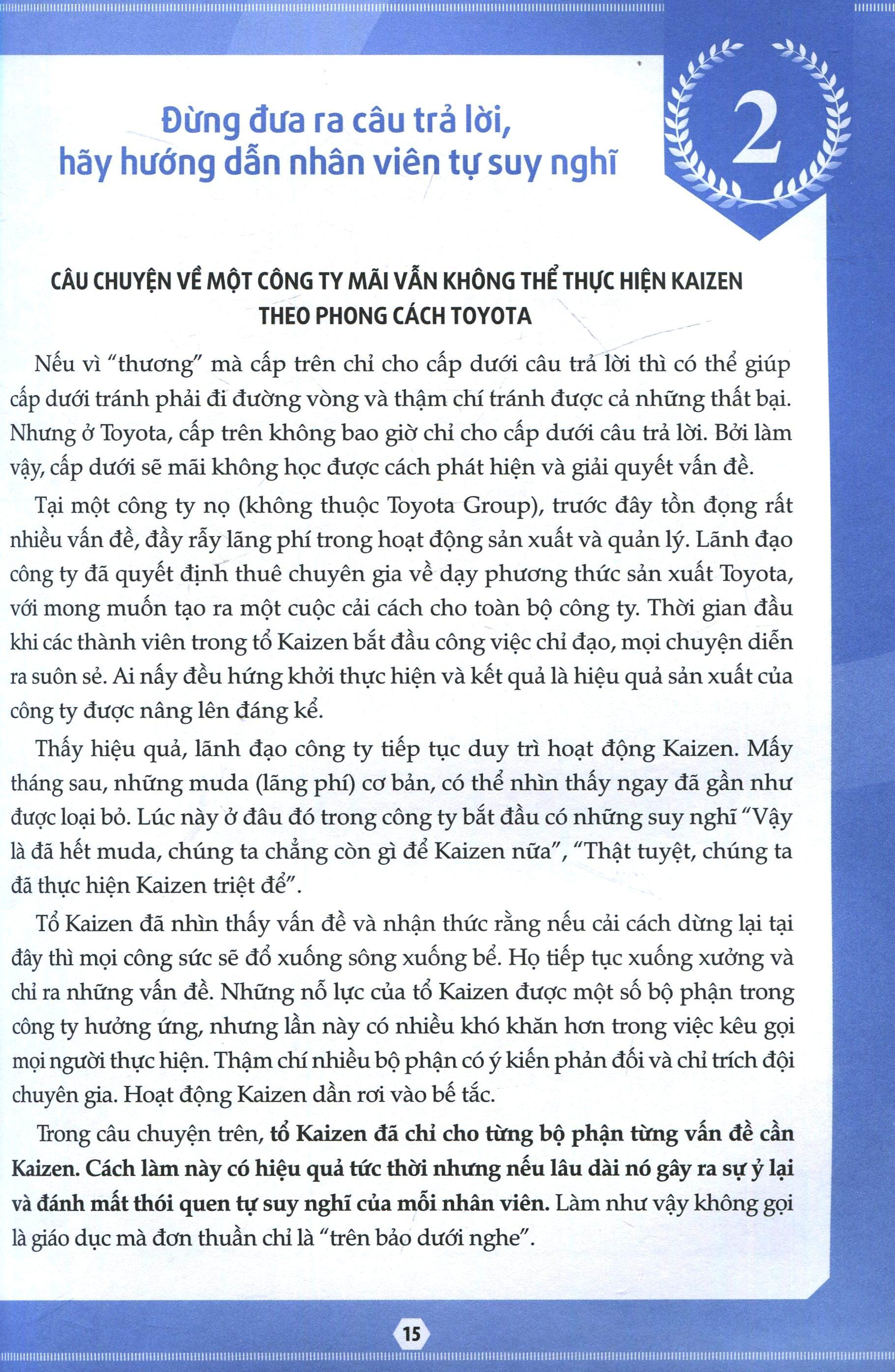 Kết quả chính là cuộc hồi phục ngoạn mục và danh hiệu nhà sản xuất xe hơi đầu tiên trên thế giới đạt đến mức sản xuất 10 triệu chiếc cuốn sách này, tôi đã chọn lọc ra những tinh hoa của phương thức sản xuất Toyota, cơ sở cho cuộc khôi phục ngoạn mục từ cơn khủng hoảng kinh tế Lehman, sao cho không chỉ các doanh nghiệp sản xuất mà cả phía thương mại cũng có thể áp dụng ngay lập tức (ngoài ra còn kèm theo hình minh họa sao cho dễ hiểu nhất). Bất cứ bài học nào trong cuốn sách này cũng đều được đúc rút từ những kinh nghiệm thực tế đã từng phát sinh trong công xưởng của Toyota. Có lẽ những bài học này cũng có phần "nghiêm khắc" nhưng lý do của sự “nghiêm khắc” ấy chính là xuất phát từ lòng tin vào khả năng tuyệt vời của con người. Tôi cũng mong muốn quý độc giả nhận ra và tin vào trí tuệ, khả năng tuyệt vời tiềm ẩn bên trong bản thân m.ình. Đồng thời, xin hãy áp dụng dù chỉ 1 hay 2 điều học được vào công việc thực tế hàng ngày. Phương thức Toyota không phải chỉ để đọc mà cần thiết phải được thực hành.