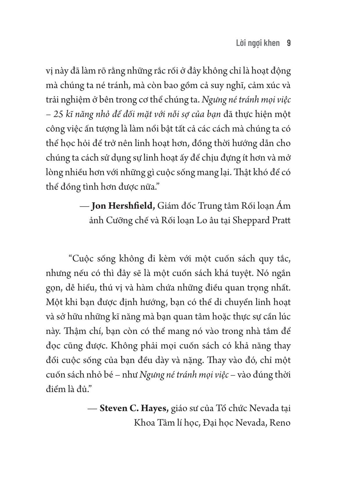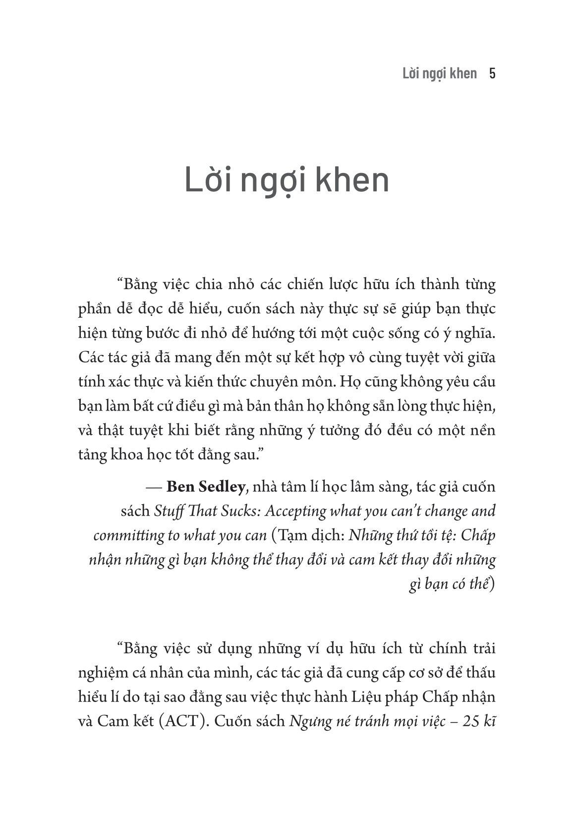 Cuốn sách Ngưng Né Tránh Mọi Việc dựa trên cơ sở của Liệu pháp Chấp nhận và Cam kết (ACT), một phương pháp trị liệu bằng hành vi đã được chứng minh là có hiệu quả trong việc giải quyết rất nhiều vấn đền tâm lí nói riêng và cuộc sống nói chứng,
