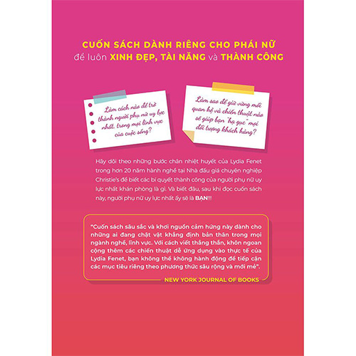 “Cuốn sách sâu sắc và khơi nguồn cảm hứng này dành cho những ai đang chật vật khẳng định bản thân trong mọi ngành nghề, lĩnh vực. Với cách viết thẳng thắn, khôn ngoan cộng thêm các chiến thuật dễ ứng dụng vào thực tế của Lydia Fenet, bạn không thể không hành động để tiếp cận các mục tiêu riêng theo phương thức sâu rộng và mới mẻ”.