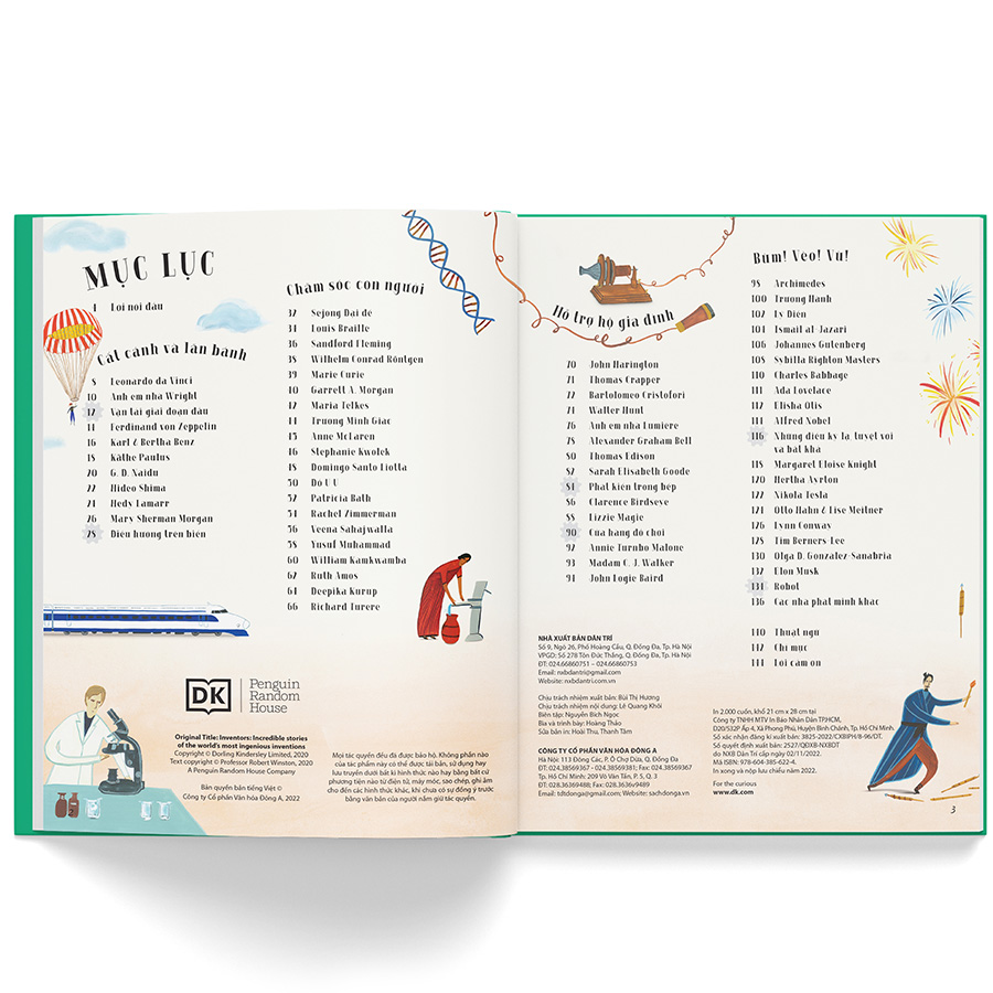 Trong cuốn sách này, bạn sẽ bắt gặp rất nhiều nhà phát minh đã thay đổi thế giới và cả những nhà phát minh đã thay đổi cuộc sống của những người xung quanh mình. Mỗi người trong số họ đều đã góp phần bảo vệ sức khỏe hoặc đem lại hạnh phúc cho loài người, hoặc cải tiến những vật dụng trên hành tinh mà con người chúng ta đang sinh sống.