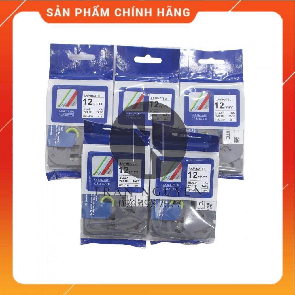 ✨Nhãn In Brother HZe-231 - Đen nền trắng 12mm x 8m - Hàng nhập khẩu