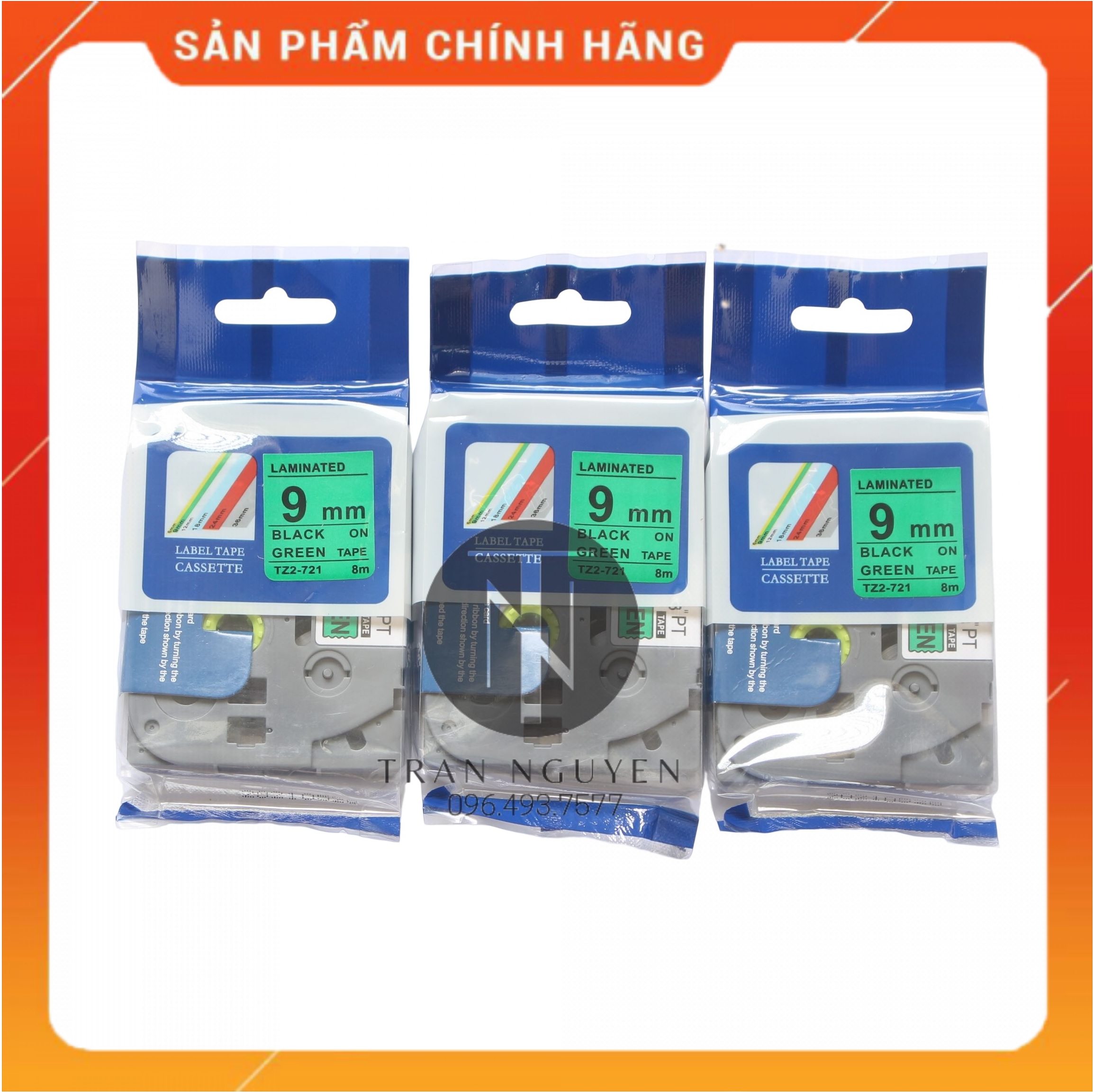 ✨Nhãn In Brother Tz2-721 - Đen nền xanh lá 9mm x 8m - Hàng nhập khẩu