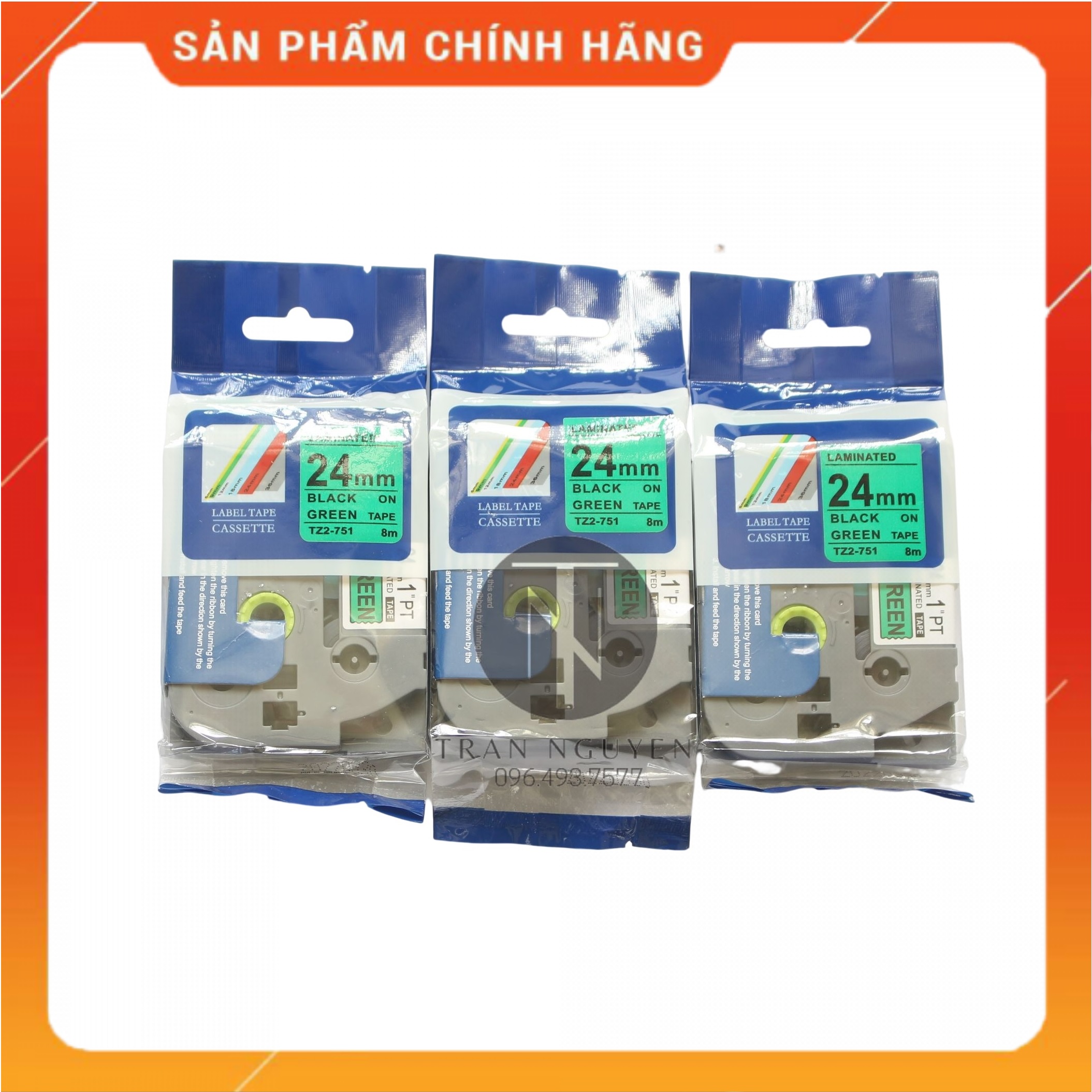 ✨Nhãn In Brother Tz2-751 [Combo 5 hộp] Đen nền xanh lá 24mm x 8m - Hàng nhập khẩu