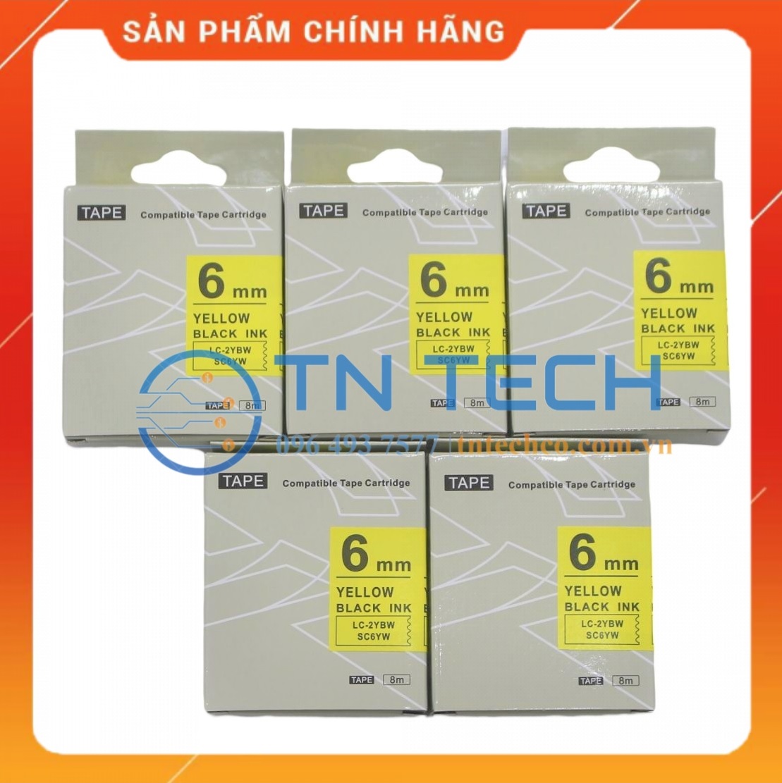 NHÃN IN TEPRA-EPSON LC-2YBW (SC6YW) – CHỮ ĐEN NỀN VÀNG 6MM X 8M• Mã sản phẩm: SC6YW/LC-2YBW• Màu sắc: Chữ đen nền vàng (Black on yellow)• Kích thước: 6mm x 8m (Cuộn nhãn khổ 6mm, tổng chiều dài cuộ...